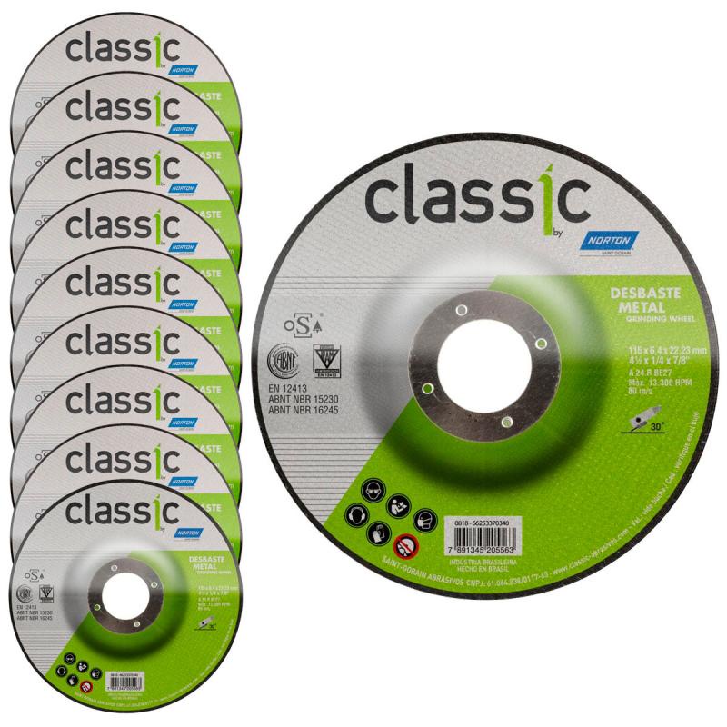 Disco de Desbaste Metal 4.1/2 POL x 6,4 MM Furo 7/8 POL Classic Kit 10 Peças NORTON