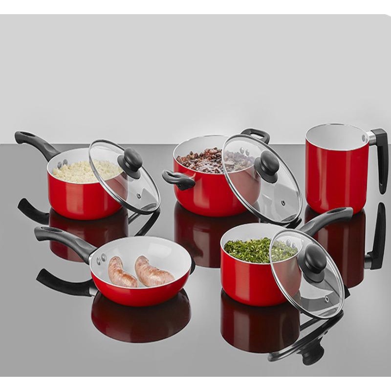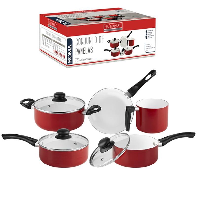 Jogo de Panelas 5 Peças Cerâmico Roma Antiaderente c/ Tampa de Vidro PAN06VM HAUSKRAFT