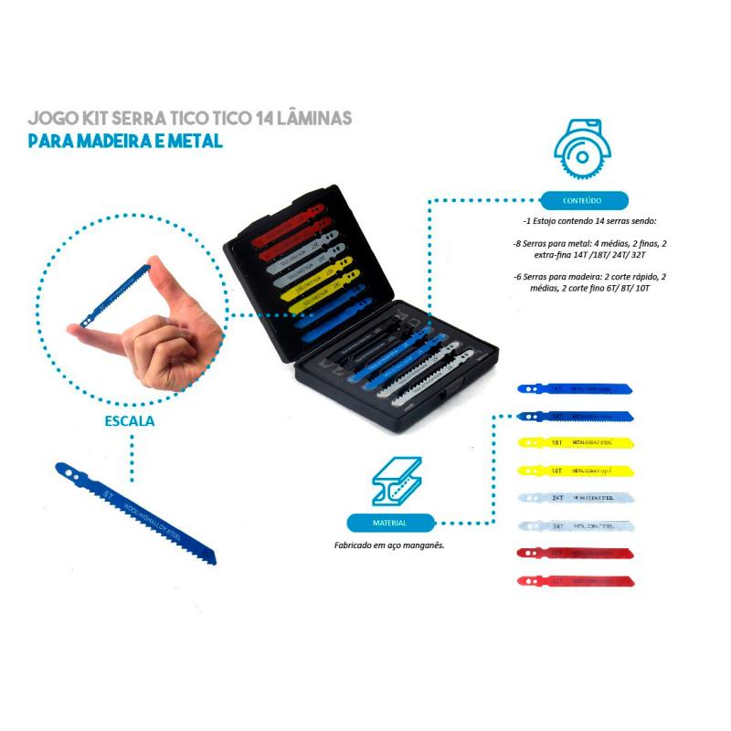 Jogo de Lâminas para Serra Tico-Tico para Metal e Madeira Kit com 14 Peças WESTERN