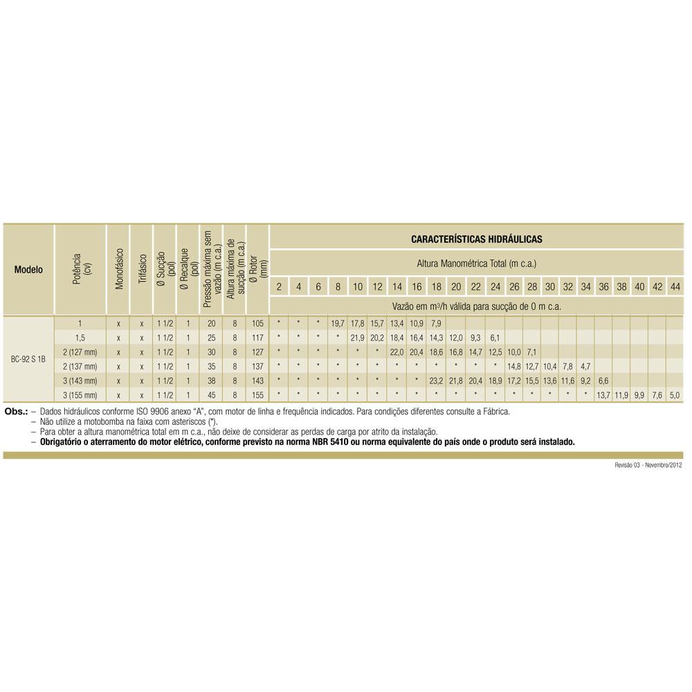 Bomba Centrífuga 2,0 CV Monofásica 110/220V BC-92S 1B SCHNEIDER