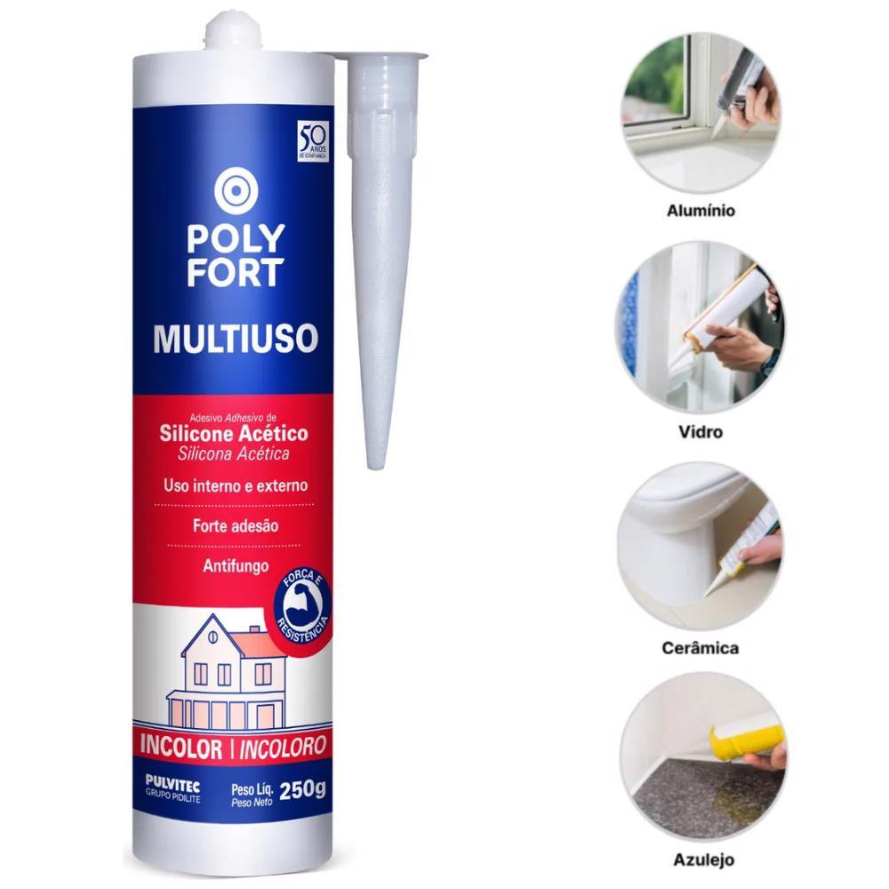 Silicone Incolor Acético Tubo 250G Para Vidro e Alumínio ZK138 PULVITEC
