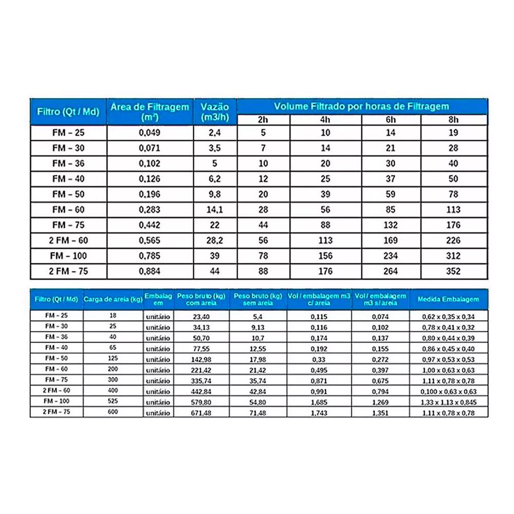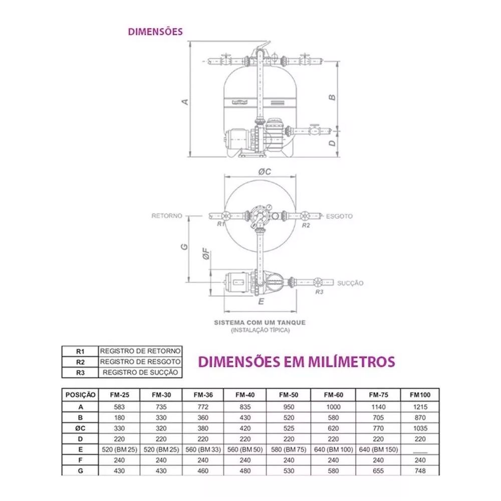 Filtro para Piscina FM-40 1/2CV FILTER com Bomba 1/2CV BMC-50 SODRAMAR até 50.000 Litros