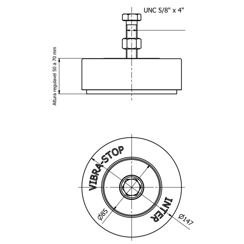 Vibra-Stop INTERMEDIÁRIO Antivibratório 5000/20000 KG Rosca 5/8 POL INT58 Kit 4 Peças VIBRA-STOP