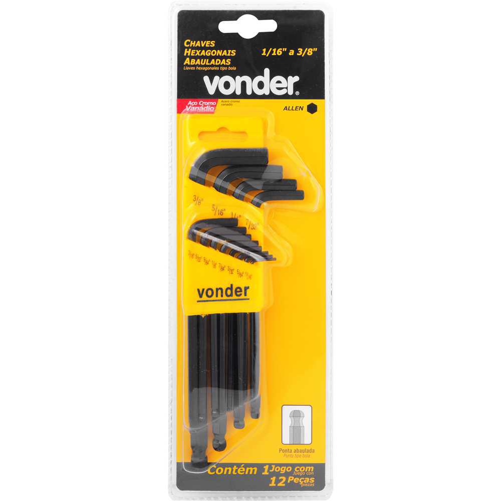 .Jogo de Chaves Hexagonais tipo L 12 peças (allen) VONDER