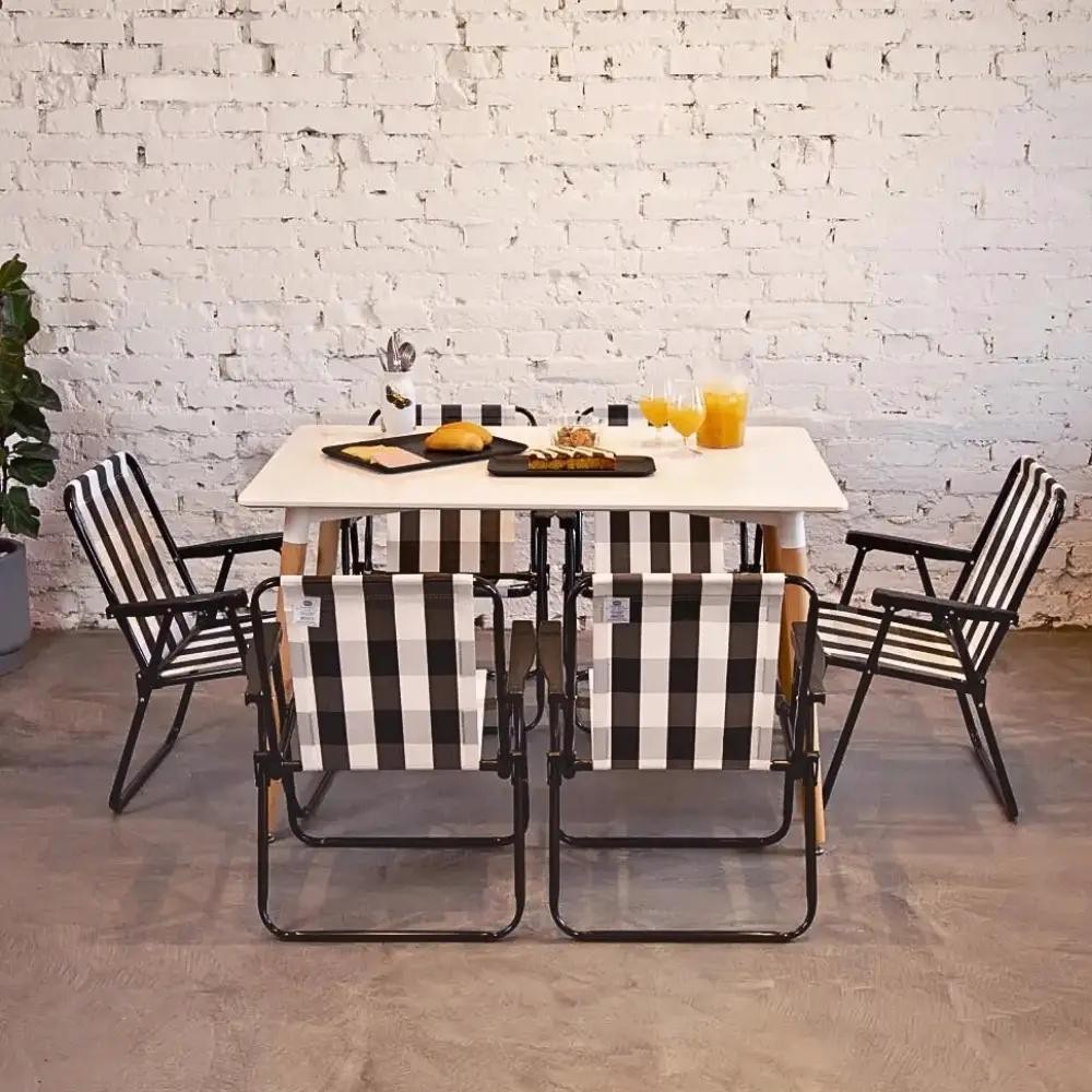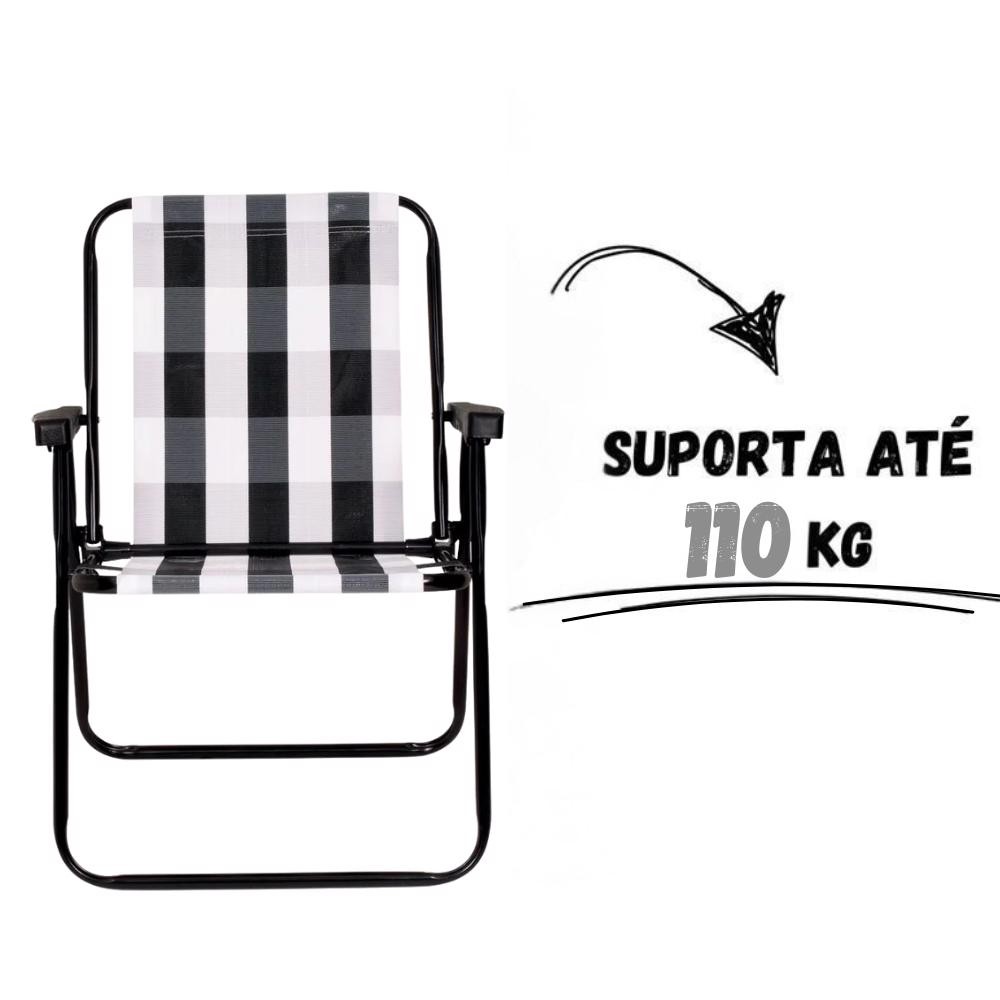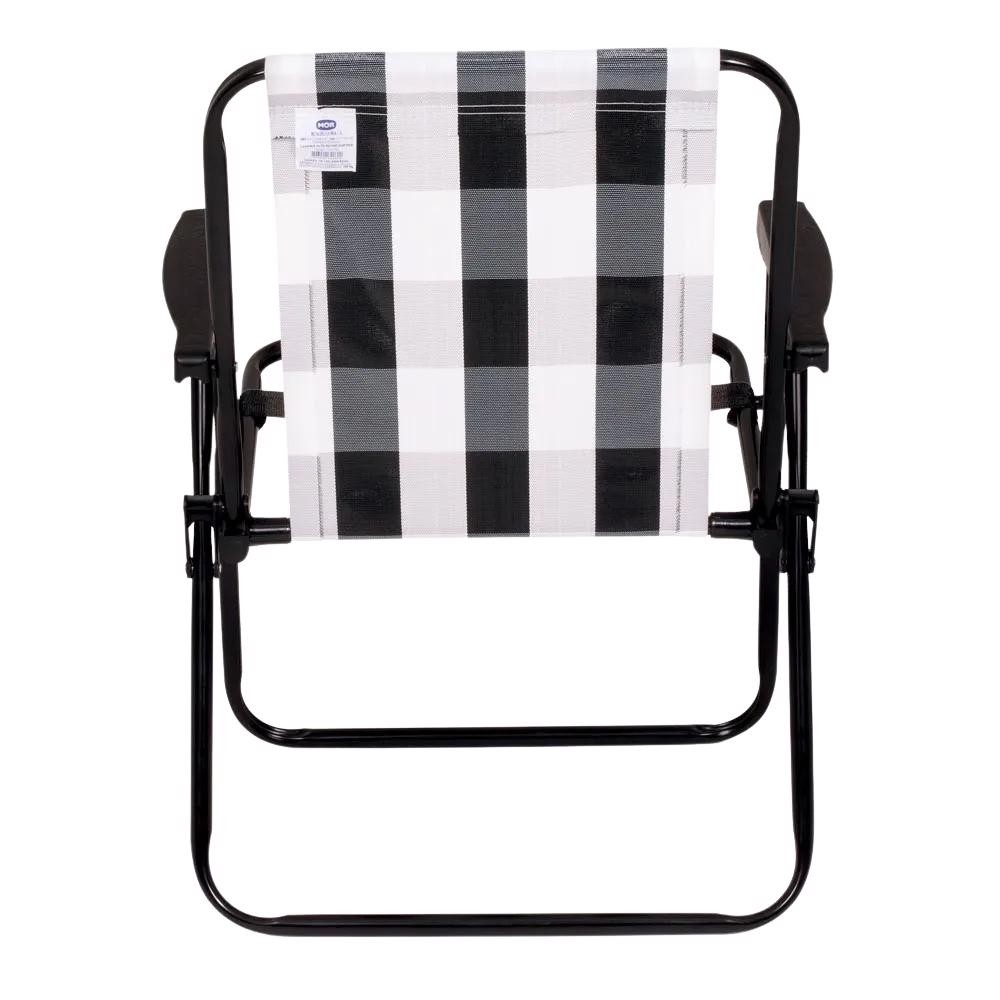 Cadeira de Praia Alta de Aço Pintado Xadrez Preto e Branco 002583 BEL