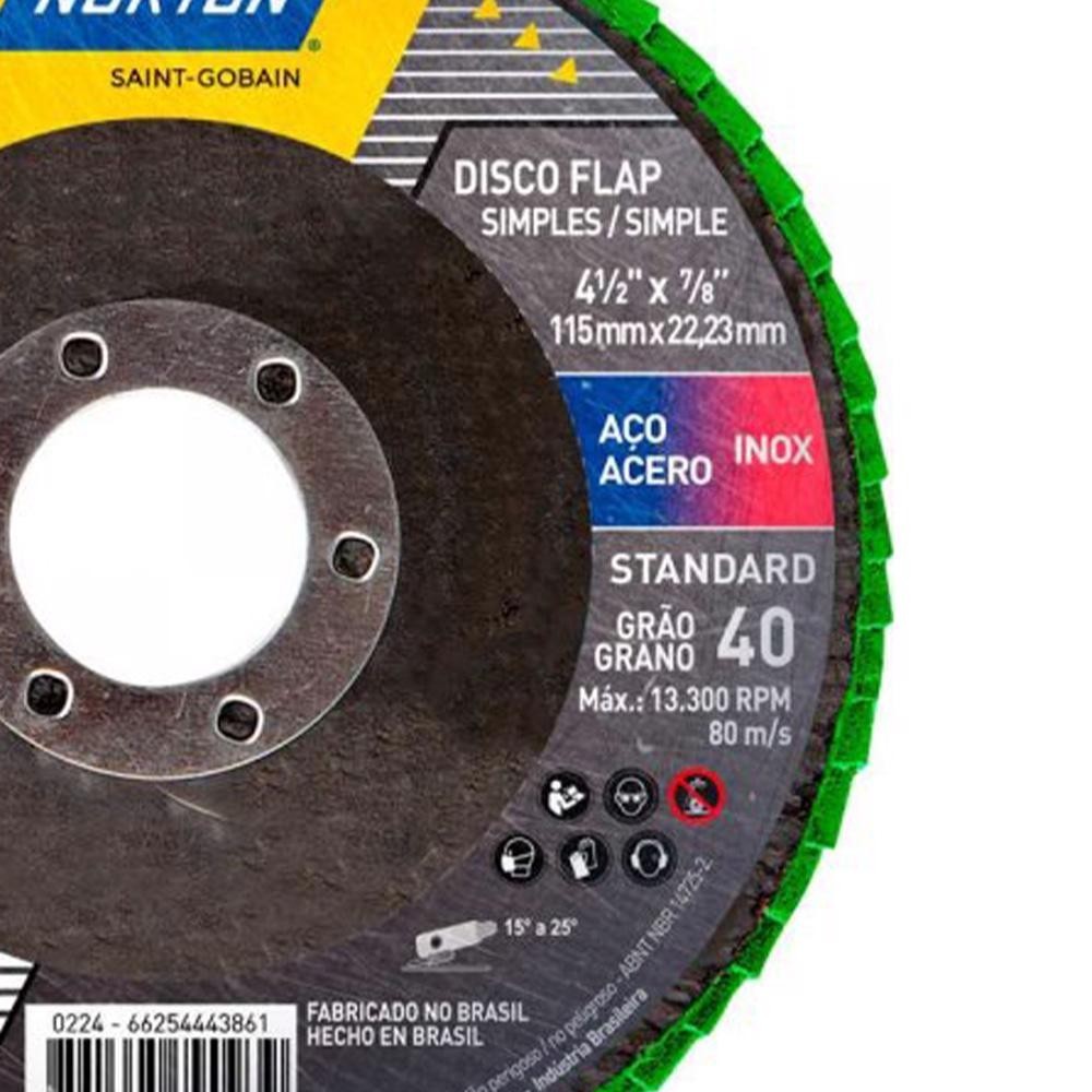 Disco Flap 4.1/2 POL Grão 60 Standard Com 10 Unidades NORTON