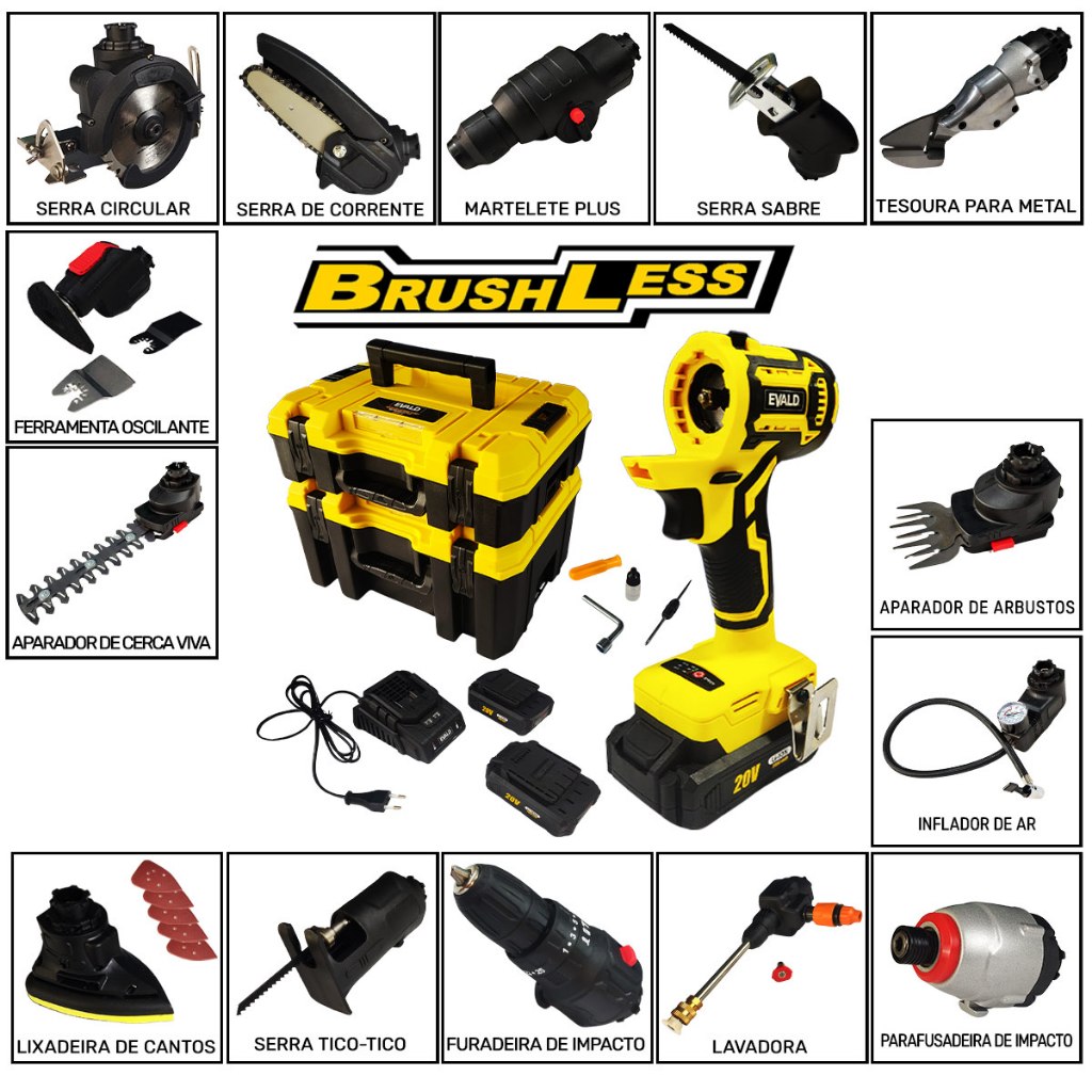 Kit Furadeira Bateria 20V Multifuncional 14 em 1 Brushless EVFM-14 EVALD