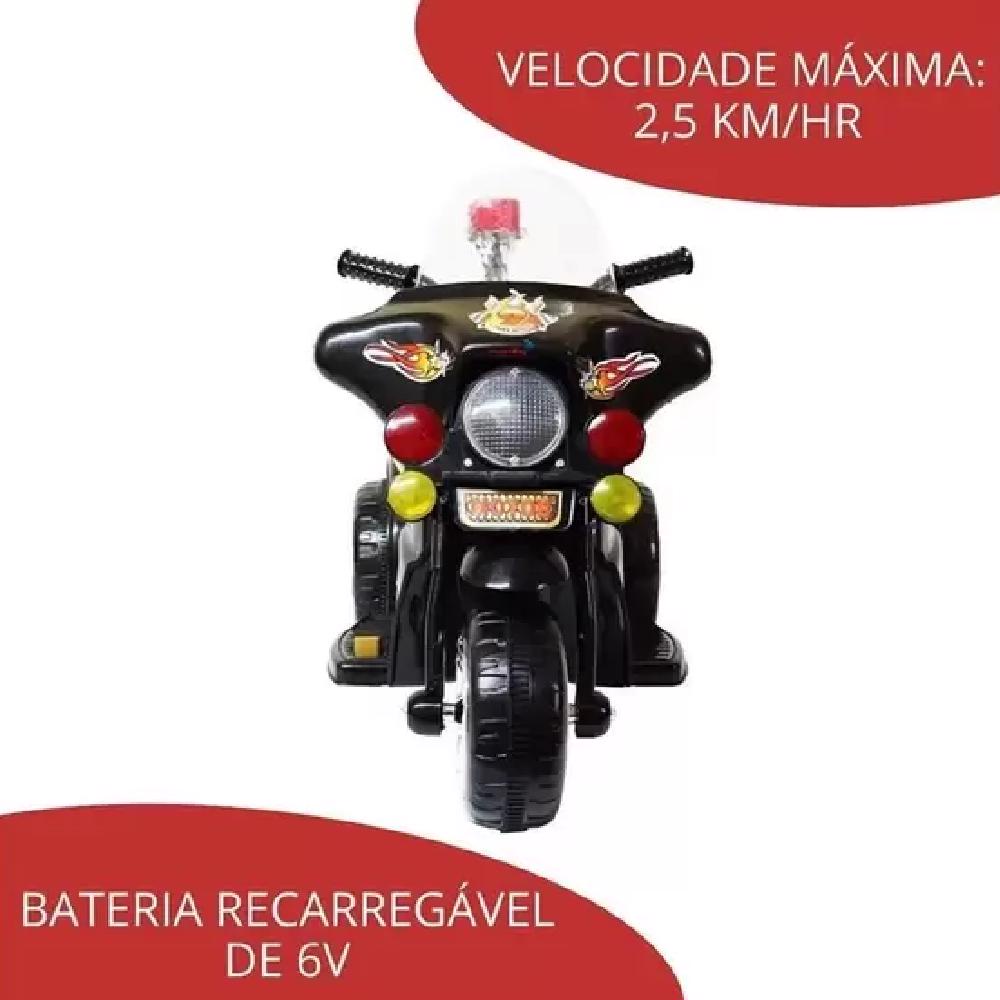 Mini Moto Elétrica Triciclo Infantil Polícia PRETA BW006PR IMPORTWAY