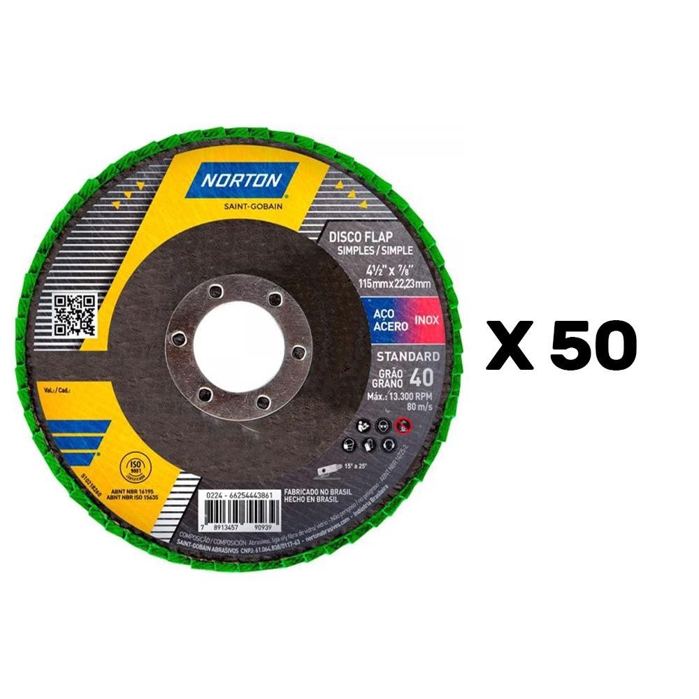 Disco Flap 4.1/2 POL Grão 40 Standard Com 50 Unidades NORTON