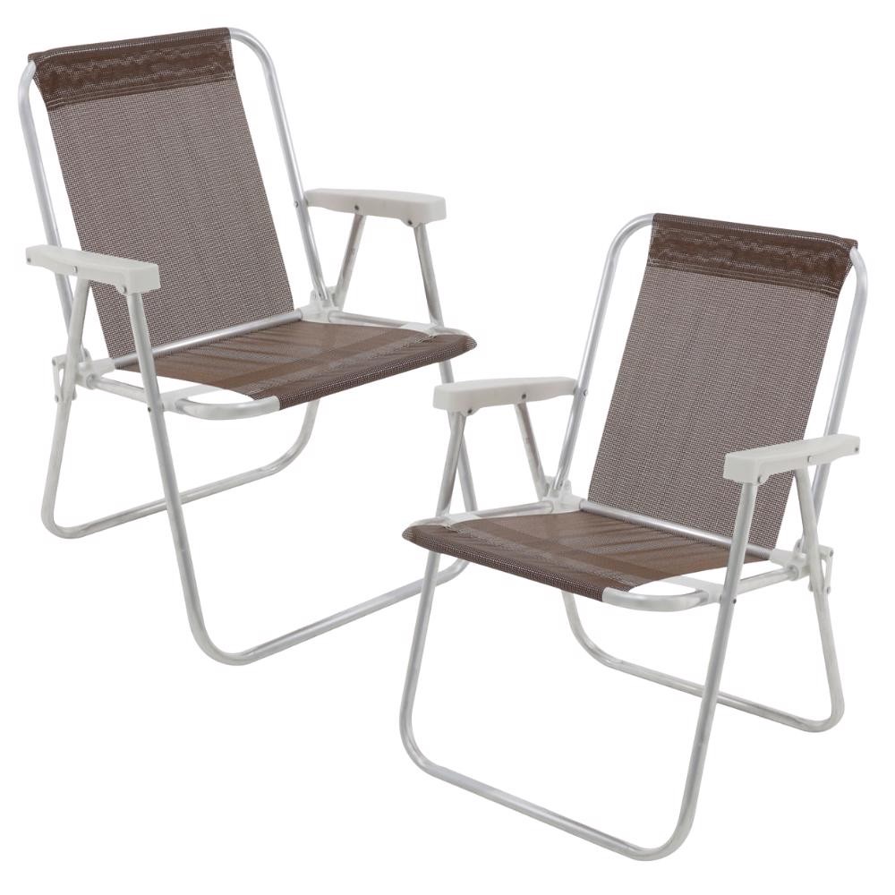 Cadeira de Praia Alta Sannet Aluminio Marrom com 2 UNI BEL