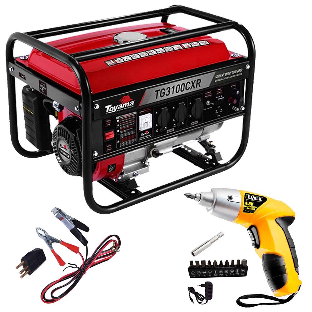Gerador Energia a Gasolina 3,1 Kva Manual TG3100CXR TOYAMA + Parafusadeira 4,8V 3Nm EVALD
