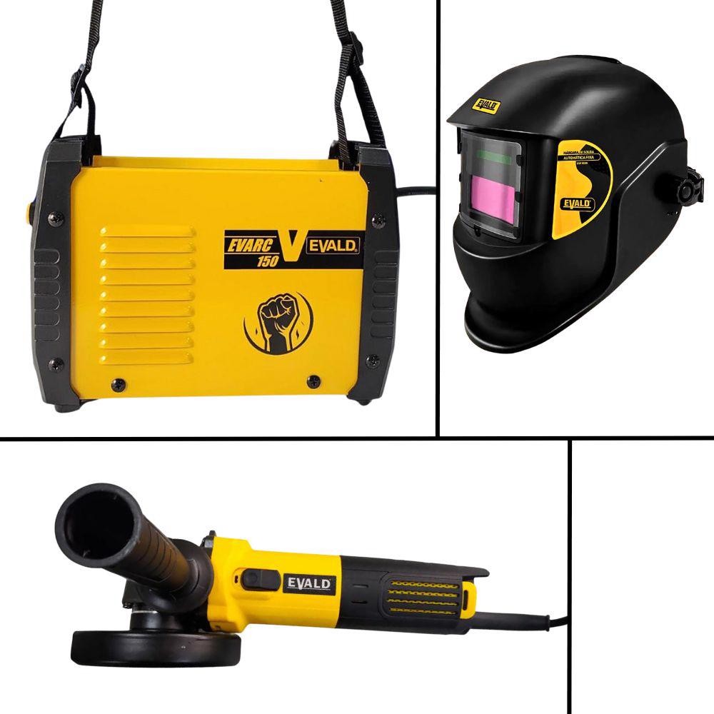 Solda Inversora 220V Monofásica com Esmerilhadeira Angular 110v ou 220V 850W e Máscara de Solda EVALD
