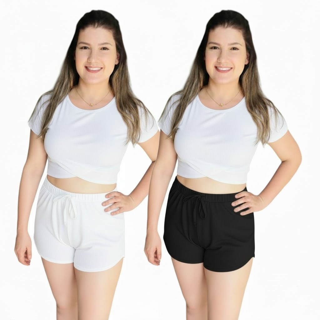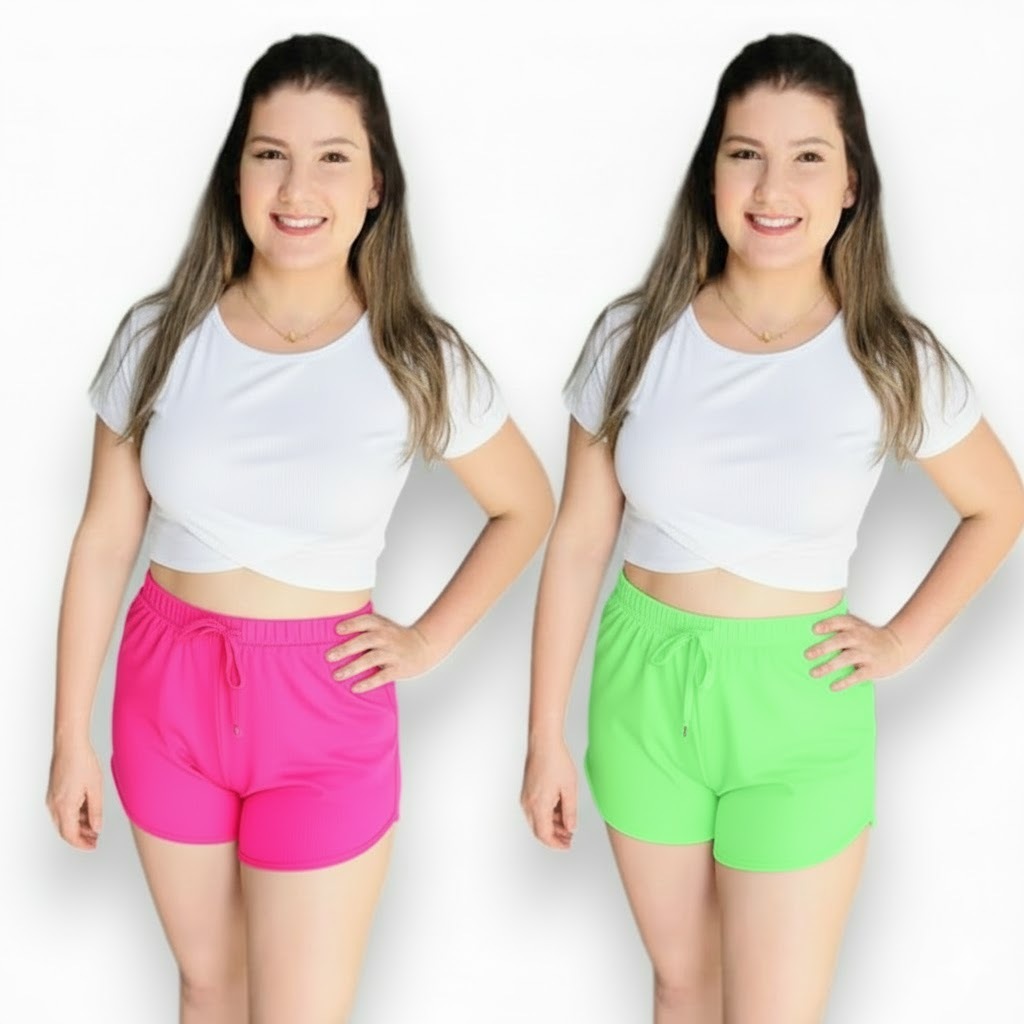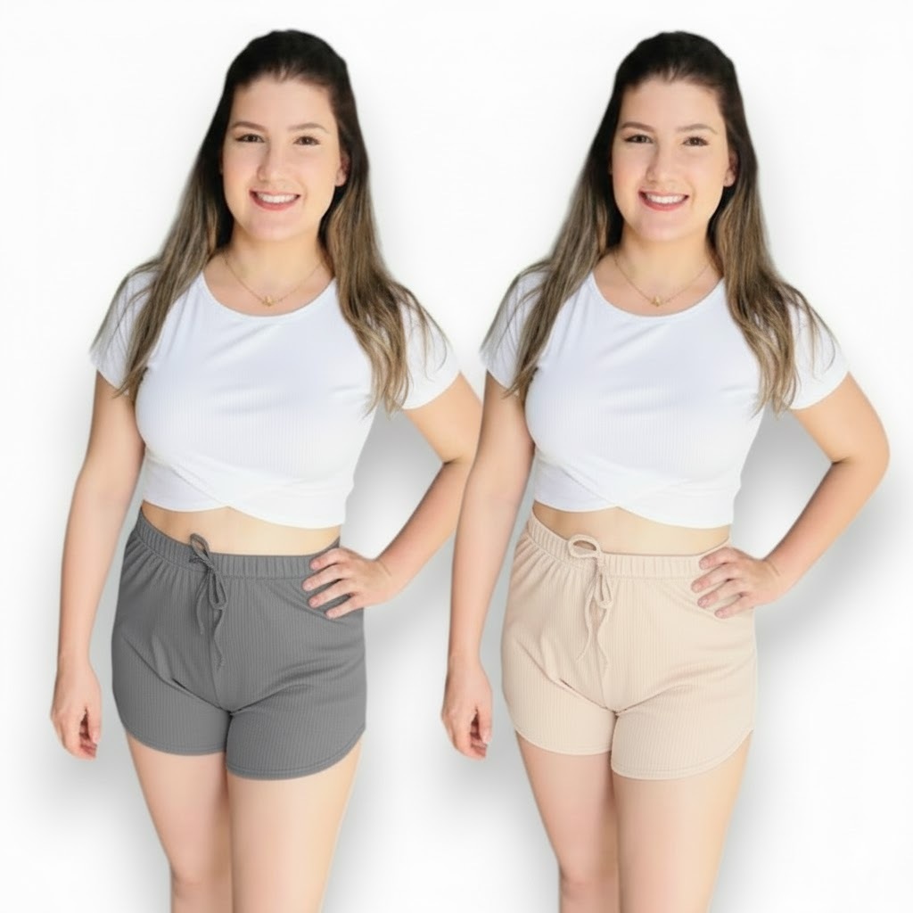 Kit 2 Shorts feminino canelado Tendência