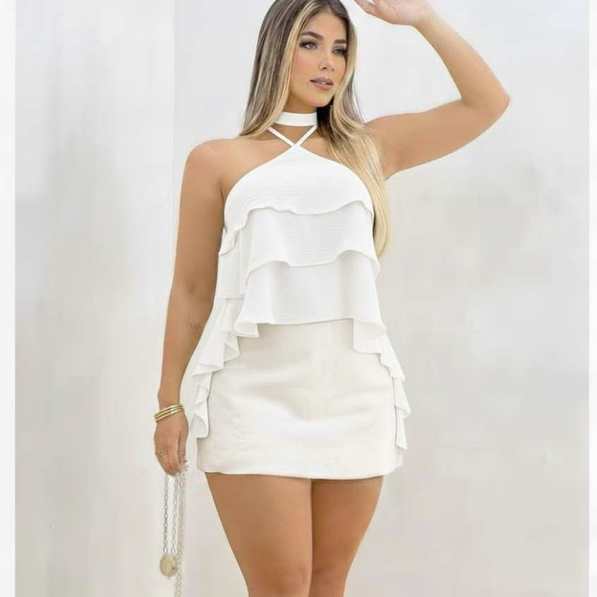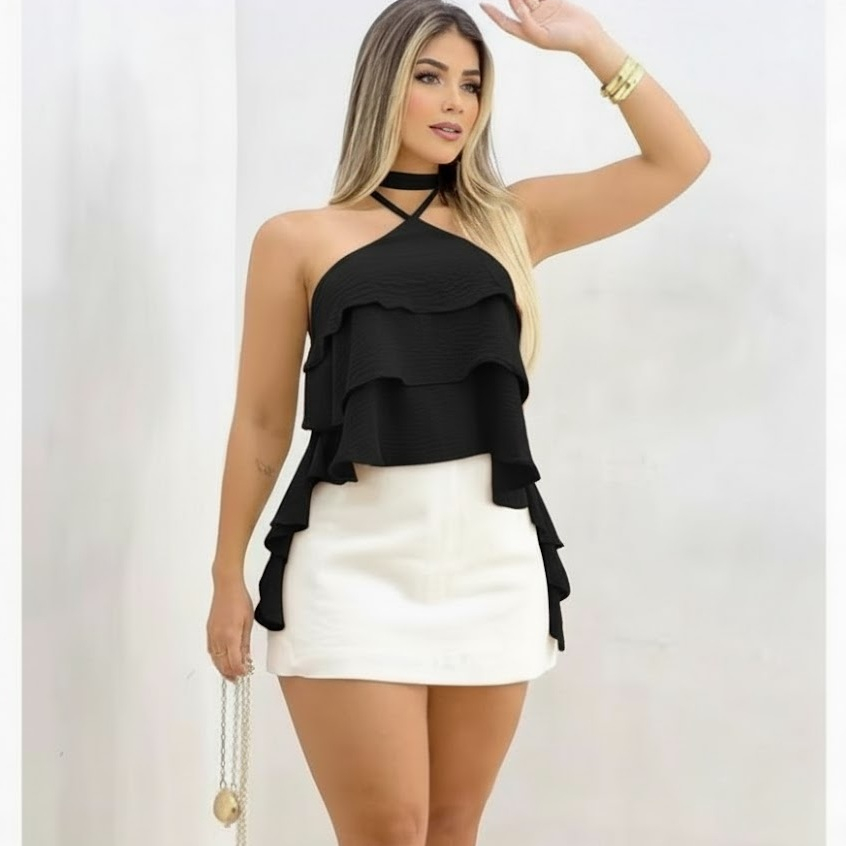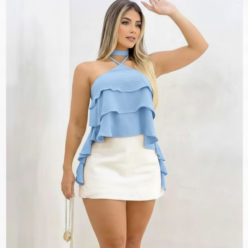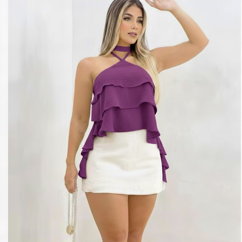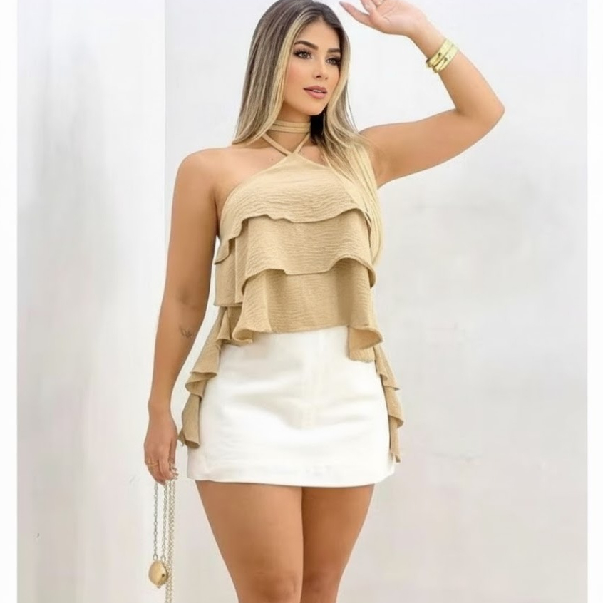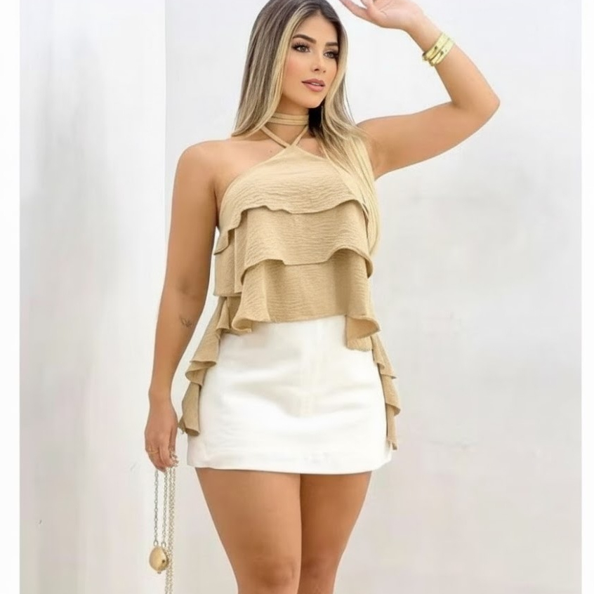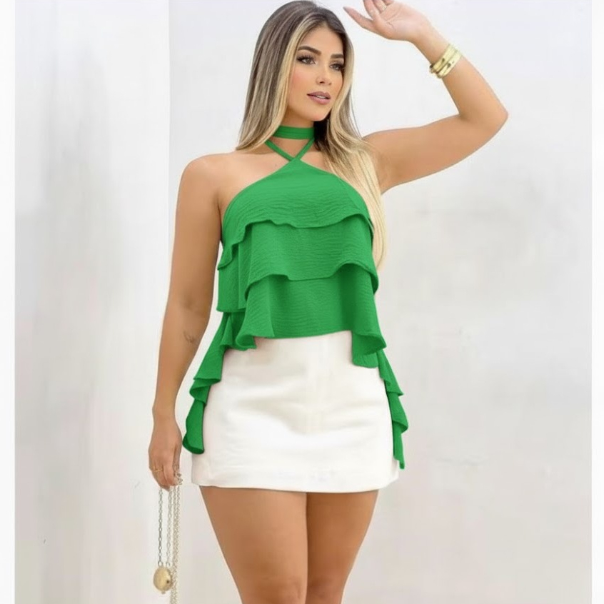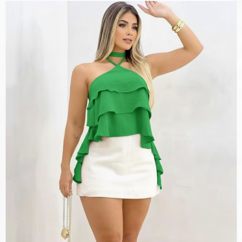 Cropped Bata Blusa Soltinha com Babado em Camadas - Estilo Boho / Ciganinha