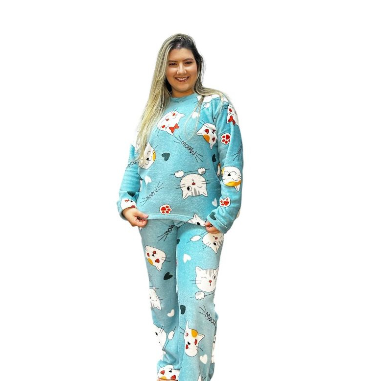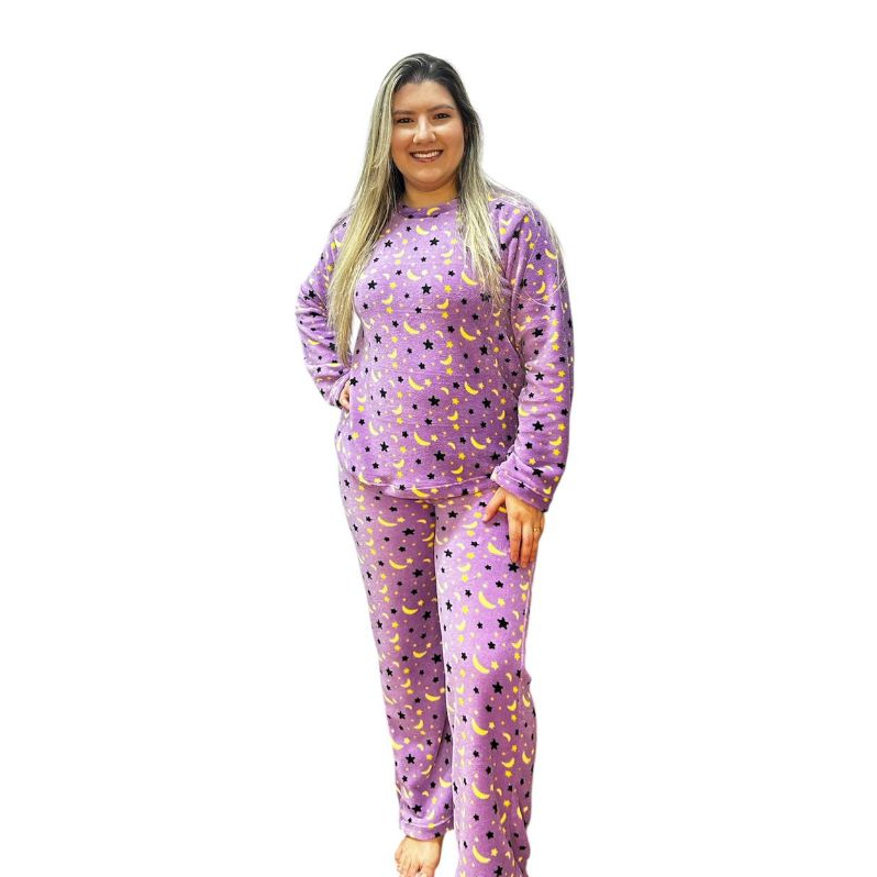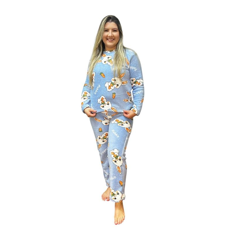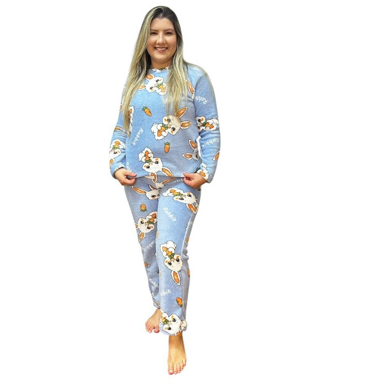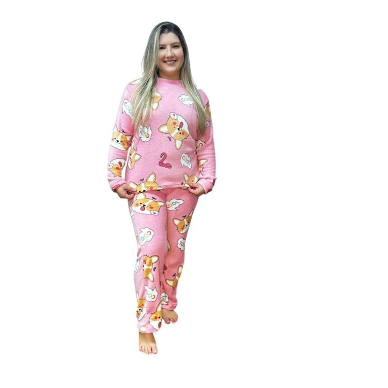 Pijama Feminino Longo Fleece Ted Peludinho Confort Premium