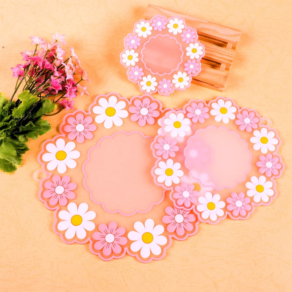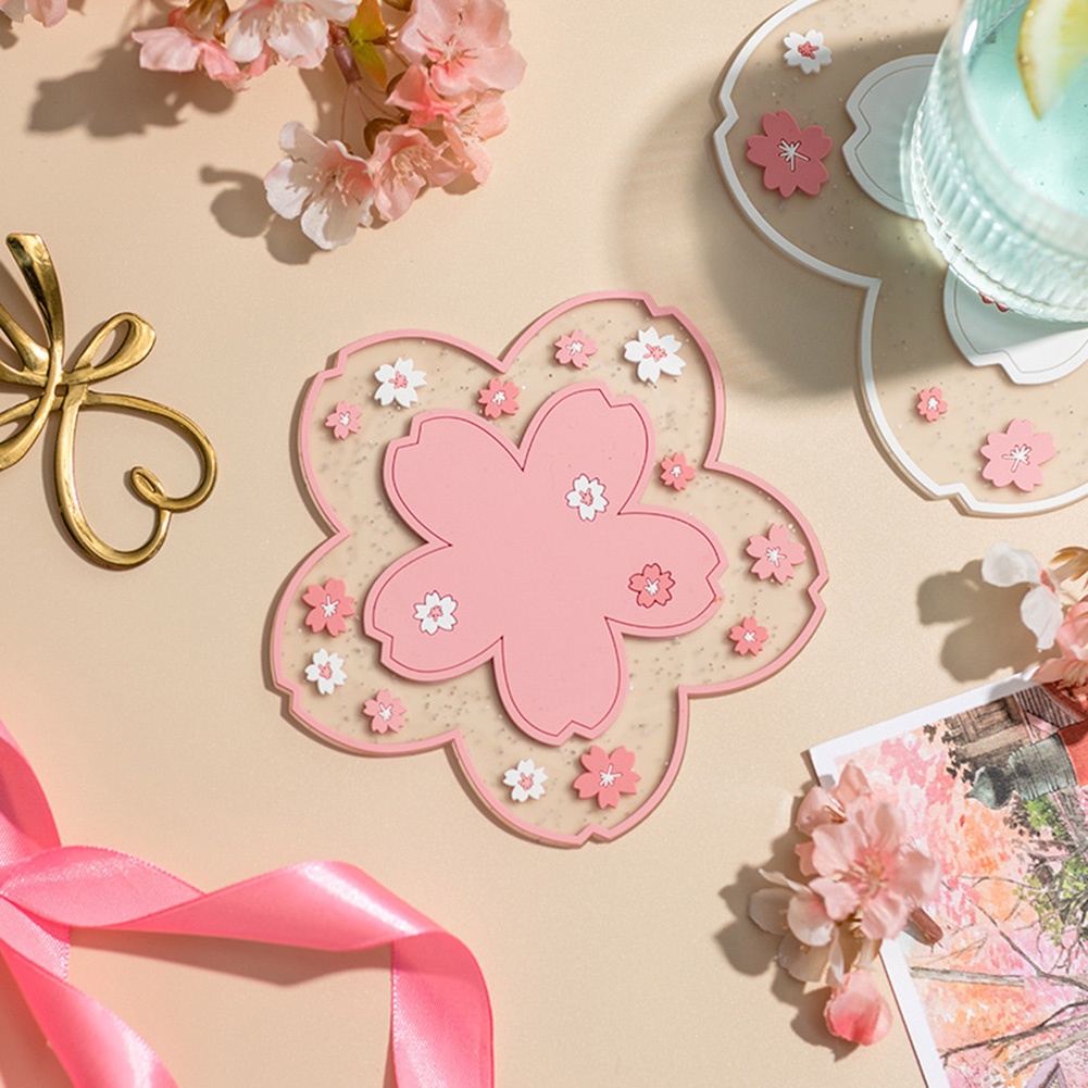 Porta Copo Flor Sakura Fofo Silicone Impermeável Descanso Copos Isolamento Térmico Antiderrapante