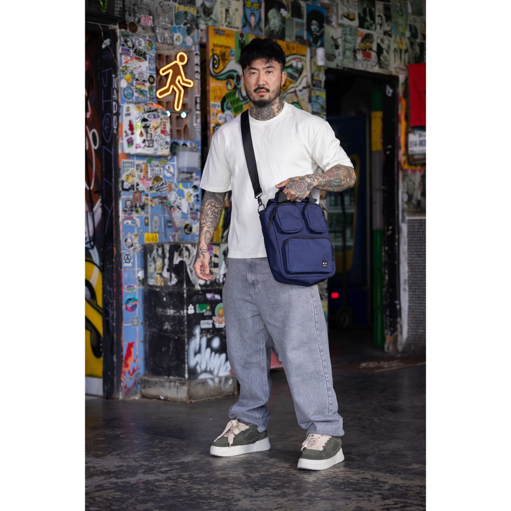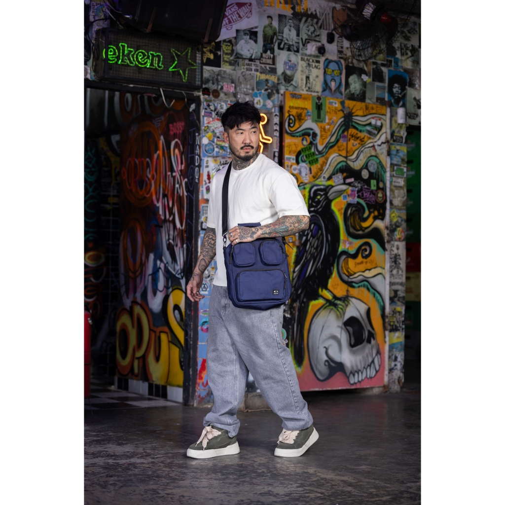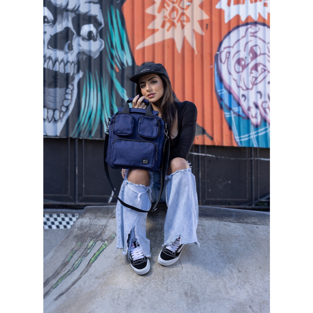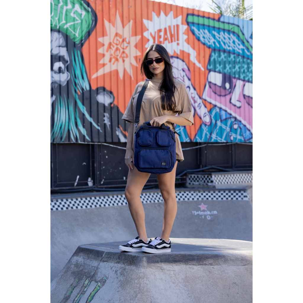 Bolsa Transversal de Lona Maktub Unissex Estilo e moda azul bag carteiro urbana
