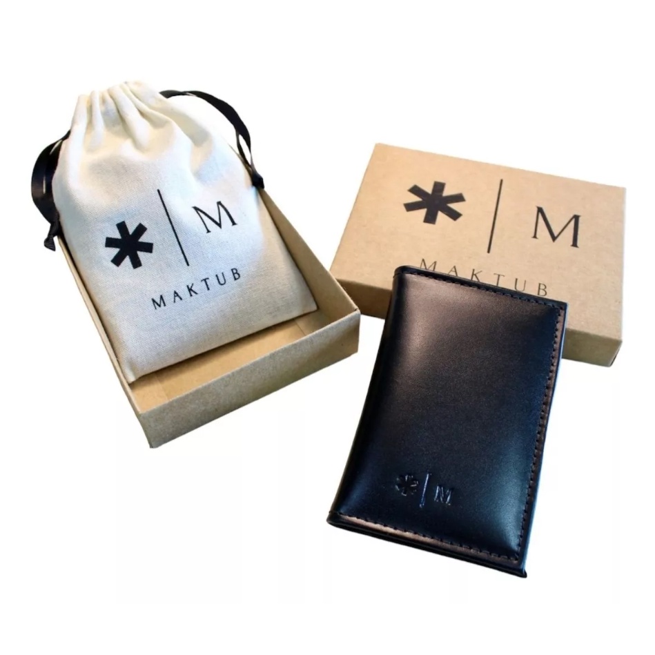 Carteira Masculina Preta Slim Maktub modelo Africa Em Couro Para Cartão CNH dinheiro