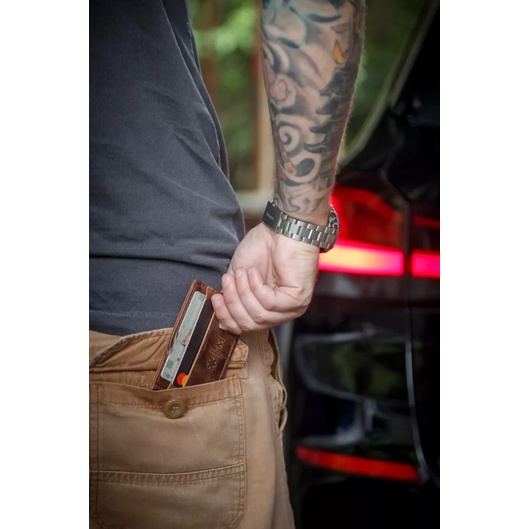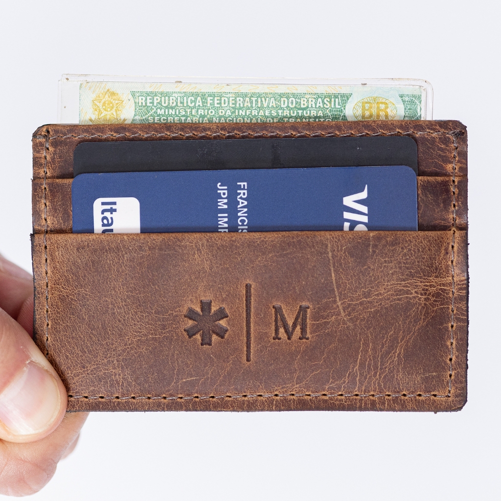 Carteira Masculina em Couro Slim Maktub Cor Marrom para Cartão Cnh