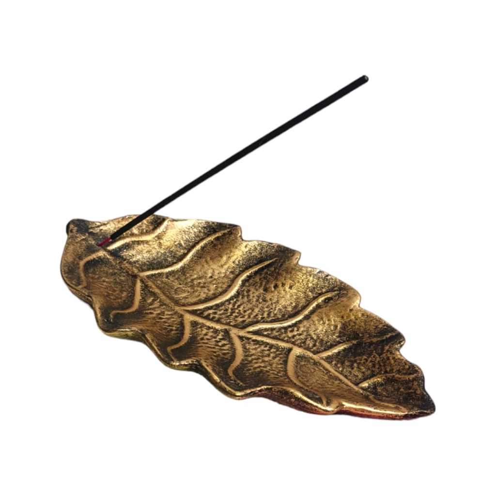 Incensario Folha Grande de Resina Dourada Porta Incenso