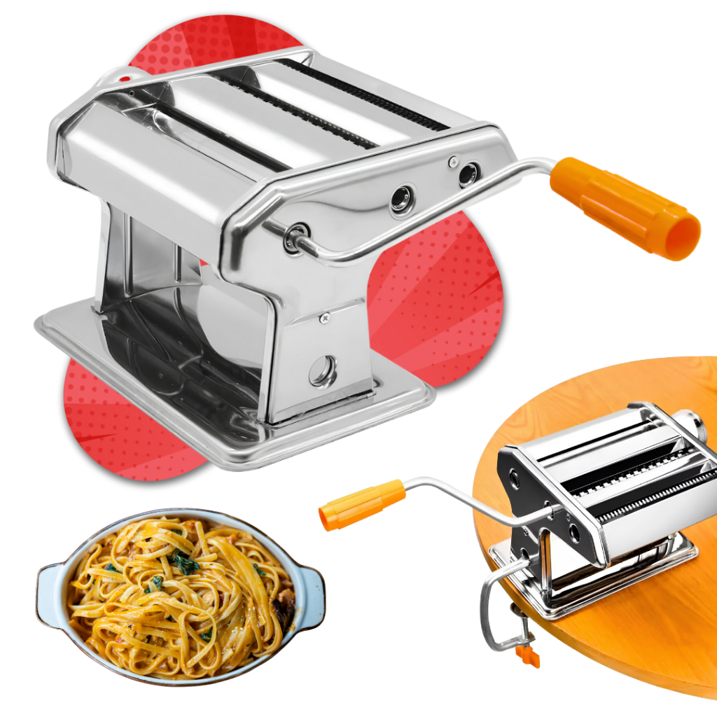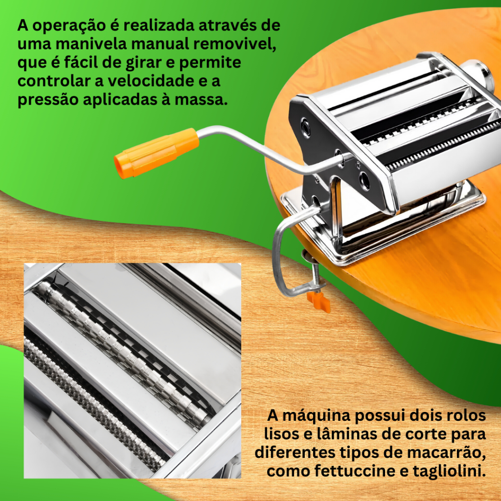 Maquina de macarrão cilindro Inox caseiro espessura ajustavel lasanha 3 massas espaguete manivela