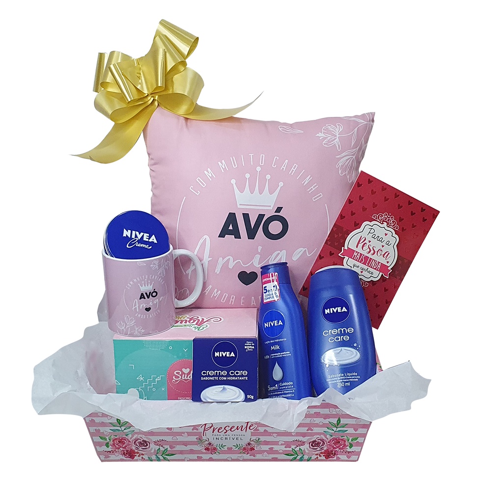 Cesta de Presente Para Avó Vó Almofada E Caneca + Kit Nivea