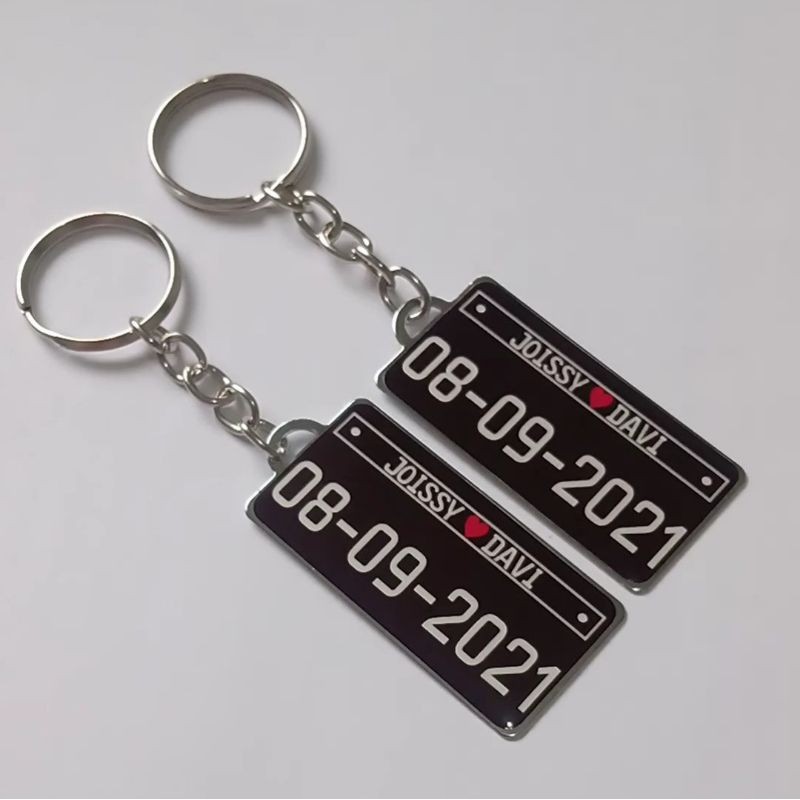2 Chaveiros Personalizados Namorados,Casal,Placa - Preta Antiga Frente e Verso