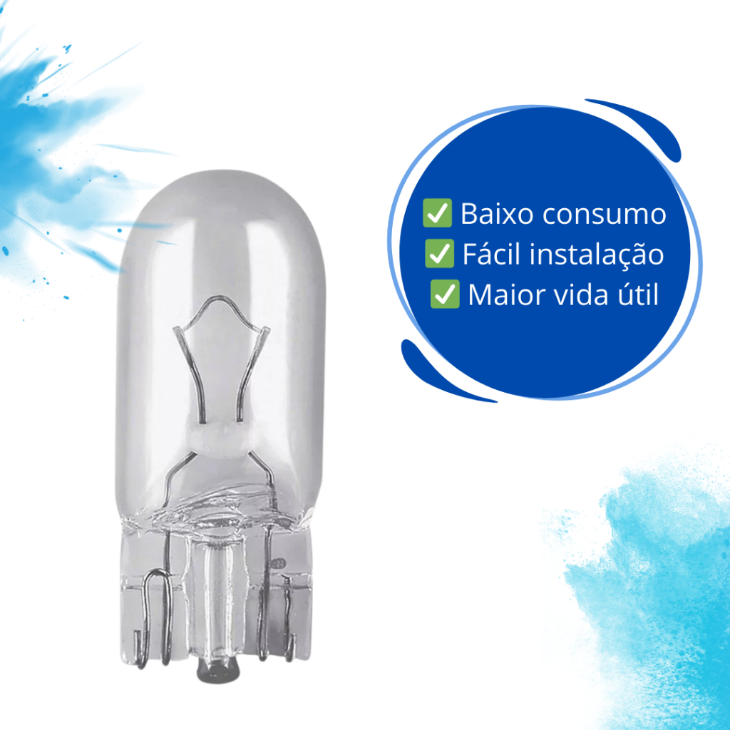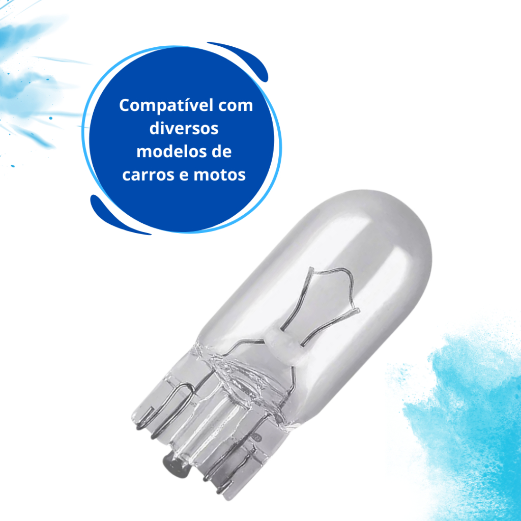 10x Lampada Pingo T10 12V Base Vidro Pingao Meia Luz Filamento Automotivo Carro Moto Placa Ré