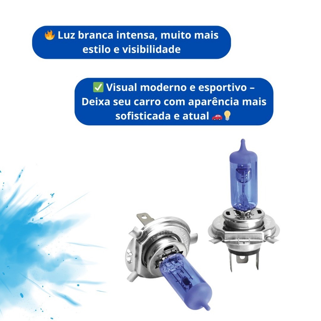 Par de Lâmpada Halógena Kit Conector H4 Super Farol Alto Baixo Moto Carro