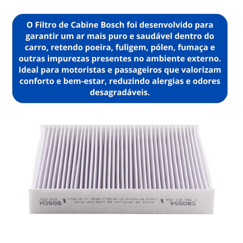 Filtro Ar condicionado Uno Novo Palio Novo Mobi Grand Siena Argo Cronos Pulse Bosch + Limpa Ar