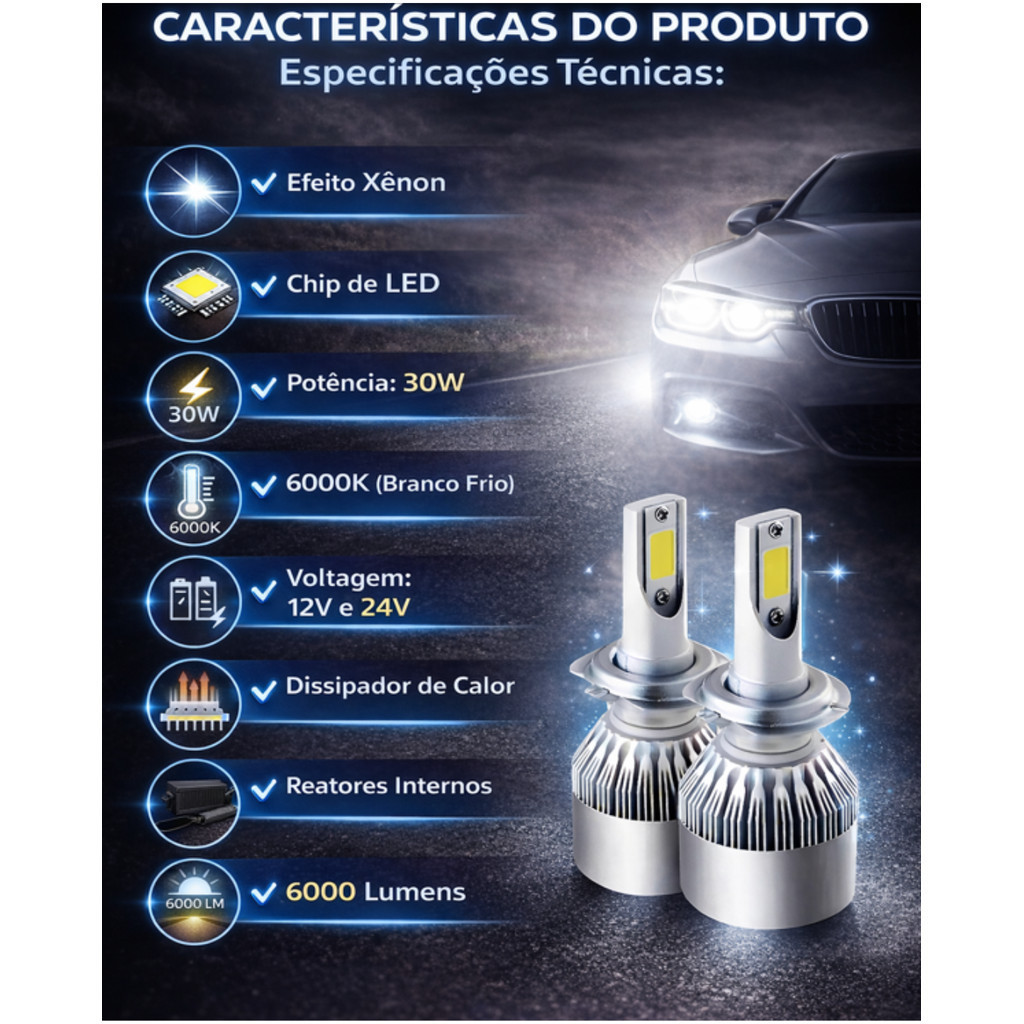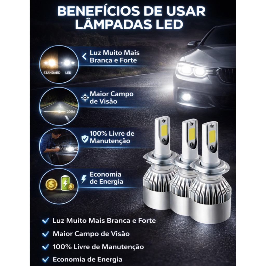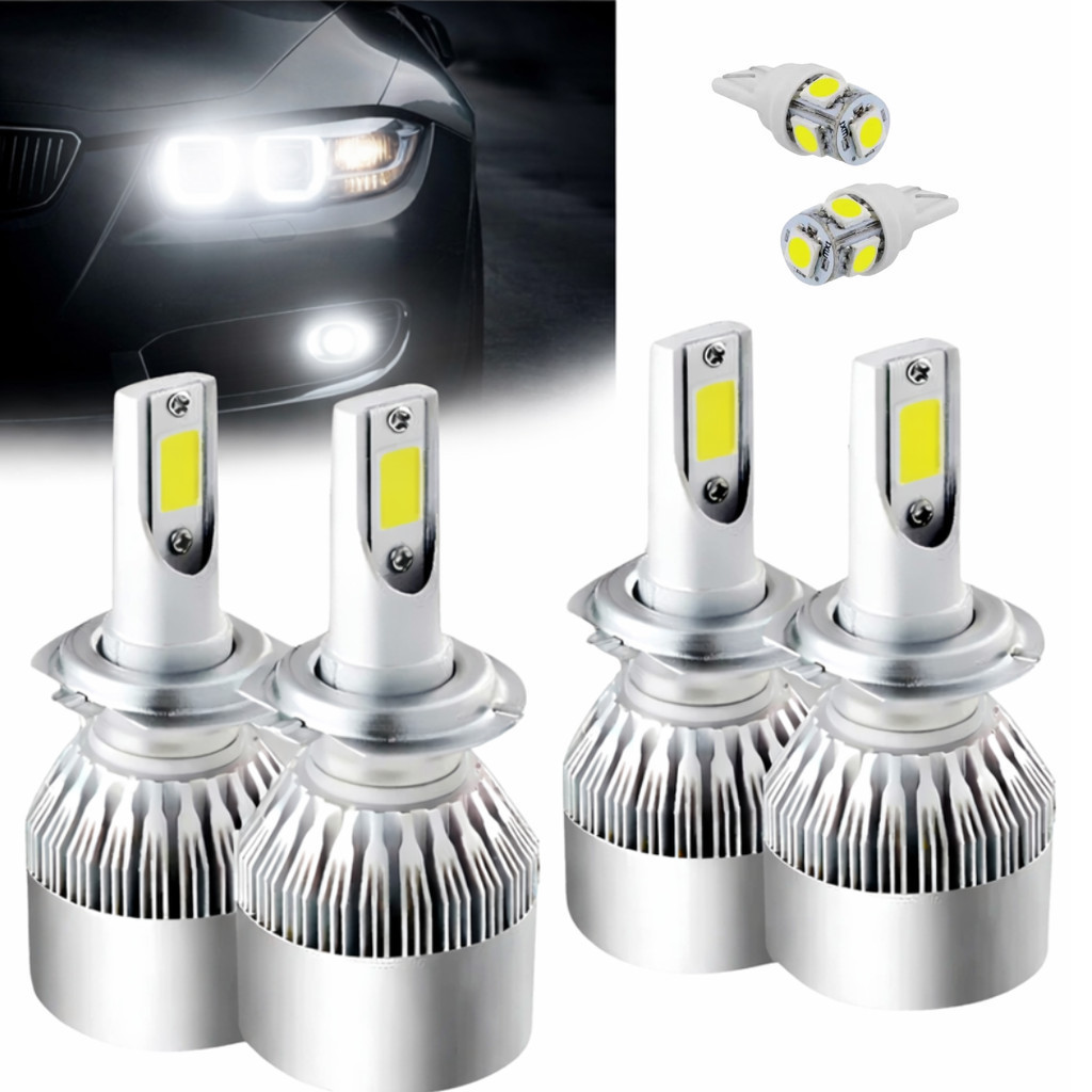 Kit 2 Par Lampadas Farol Baixo H7 Alto H1 + T10 Super Led