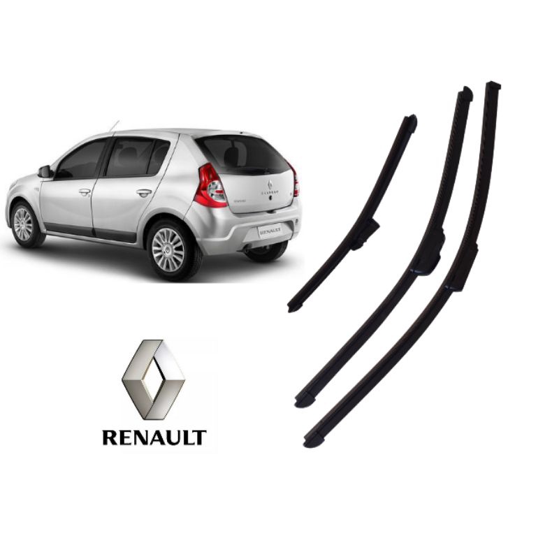 Kit Palheta Limpador Parabrisa Dianteiro + Traseiro Renault Sandero 2007 á 2014