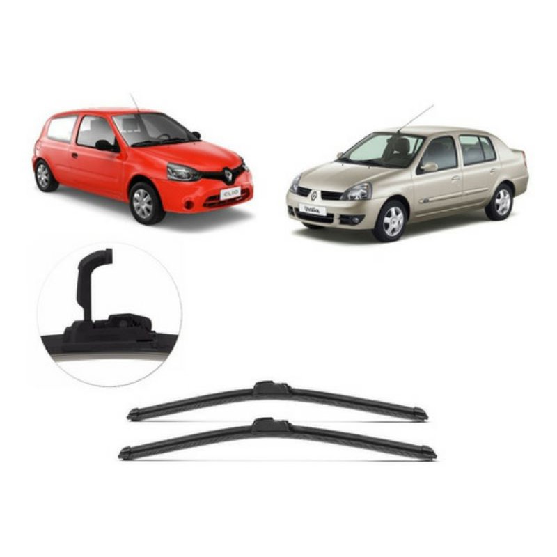 Par Palheta Limpador Parabrisa Dianteiro Renault Clio Hatch e Sedan 1999 a 2017 Encaixe Gancho