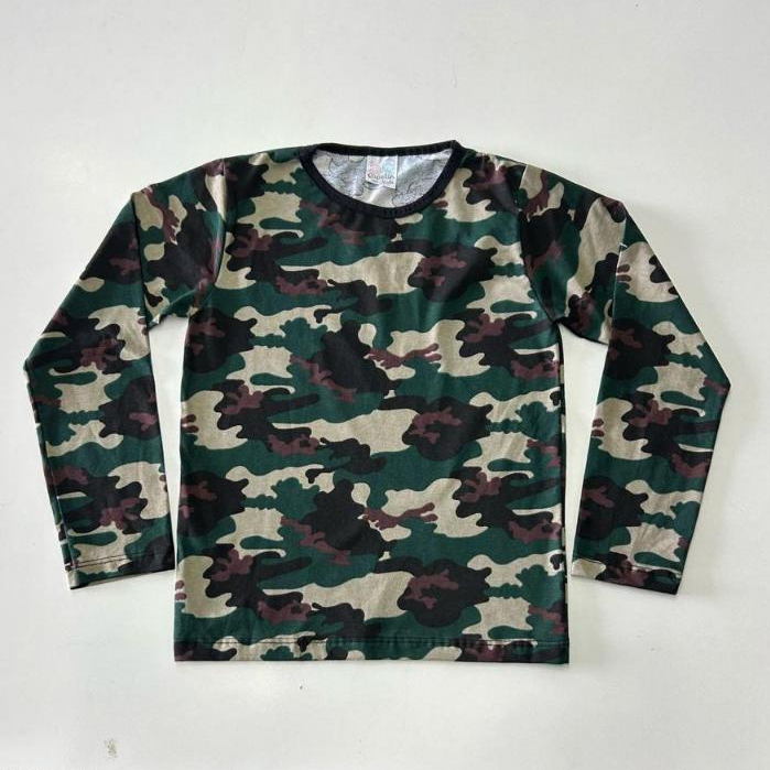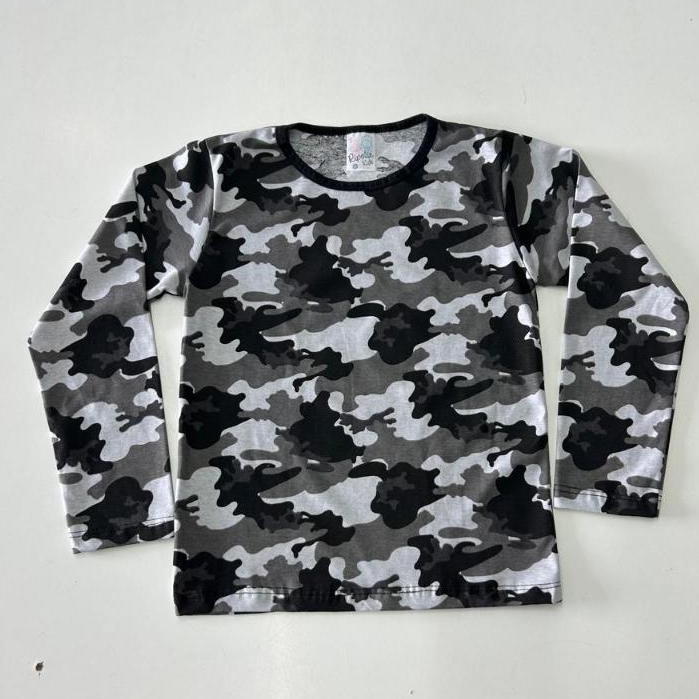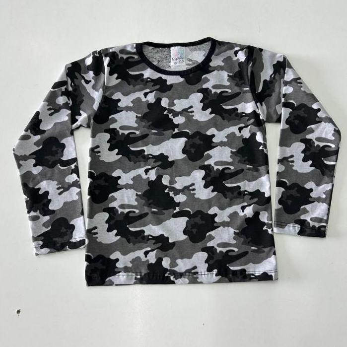 Camisa Manga Longa Lisa e Camuflada Frio Escola Masculino Infantil Roupa Menino Tamanhos do 1 ao 10