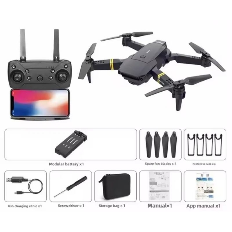 MINI DRONE E88 COM 2 BATERIAS CAMERA DUPLA WI-FI CONTROLE DE LONGA DISTÂNCIA