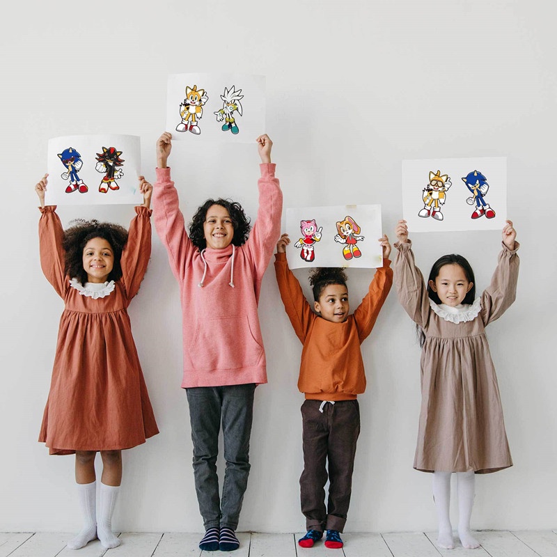 12 Unidades/Conjunto Sonic The Hedgehog Faça Seu Próprio Rosto DIY Quebra-Cabeça Adesivo Decoração De Festa