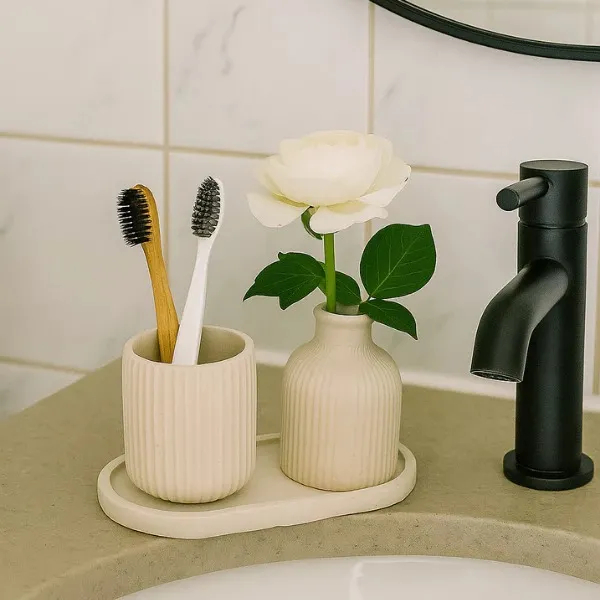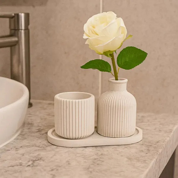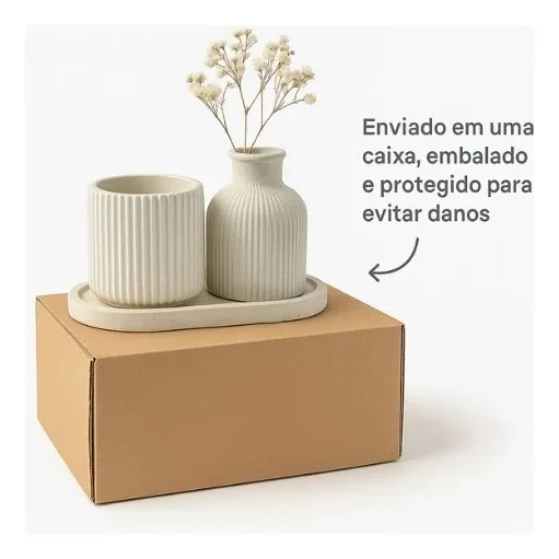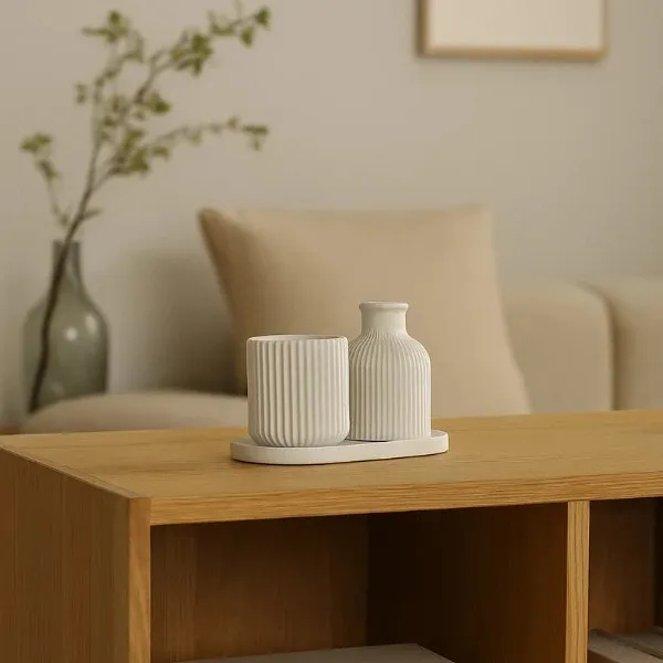 Kit 2 Vasinhos Decoração Casa Minimalista + Bandeja Decorativo Branco