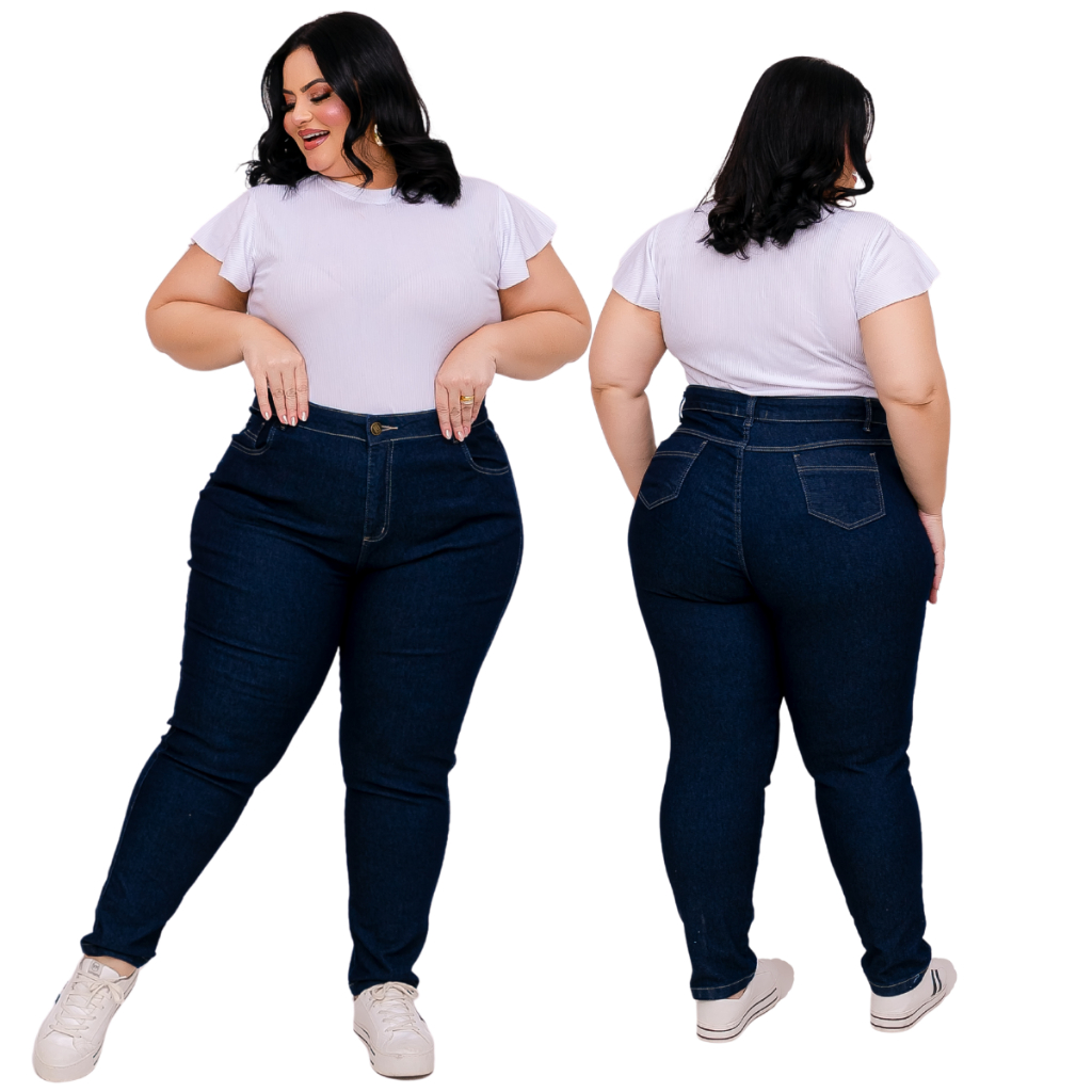 Calças Femininas Jeans Plus Size com Lycra Cintura Alta levanta bum bum