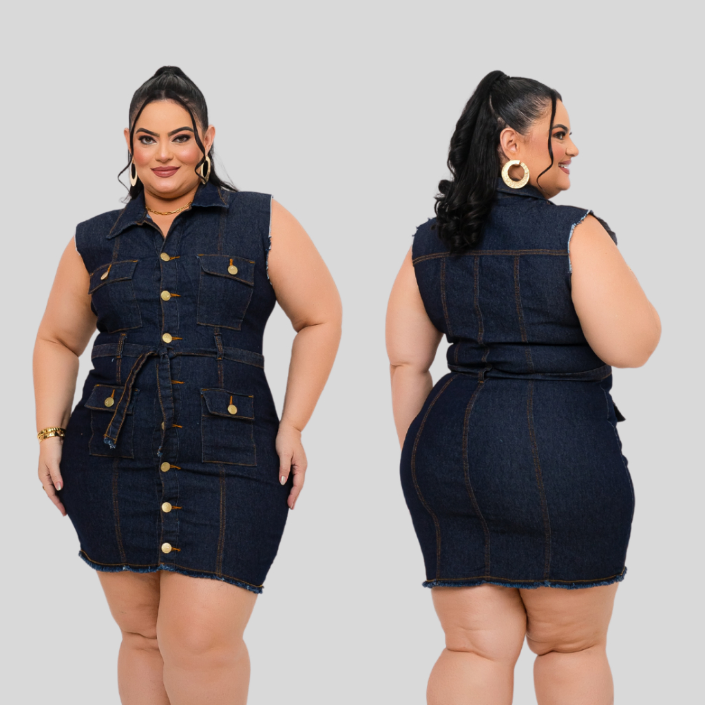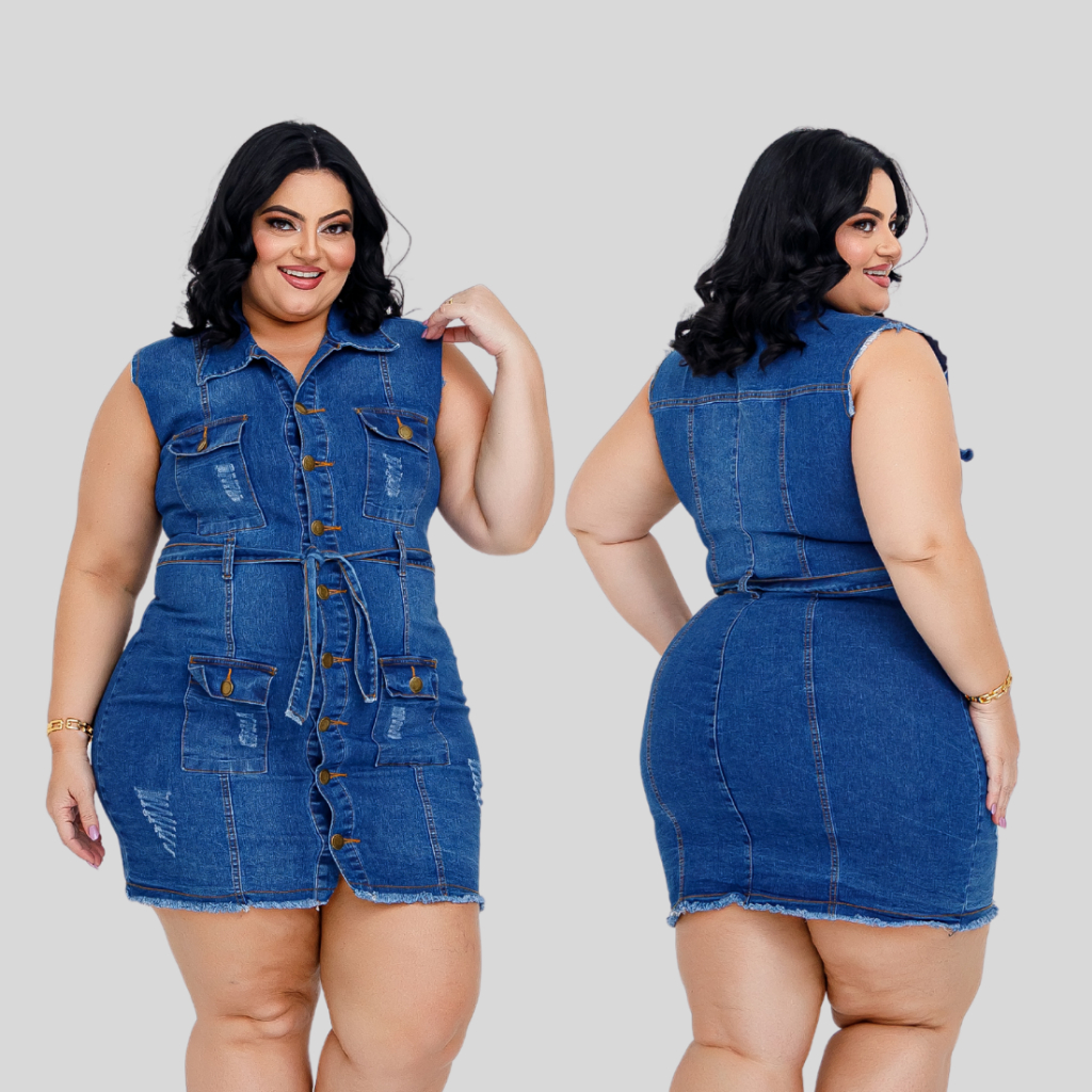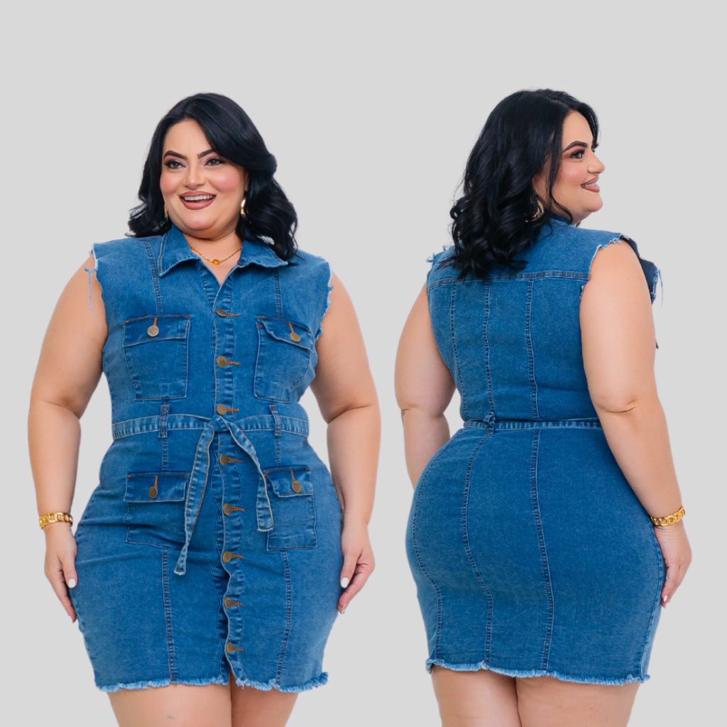 Vestido Jeans Plus SIze Feminino com Elastano Estica