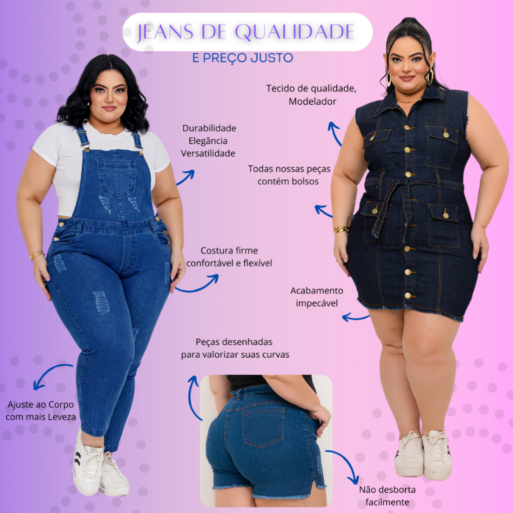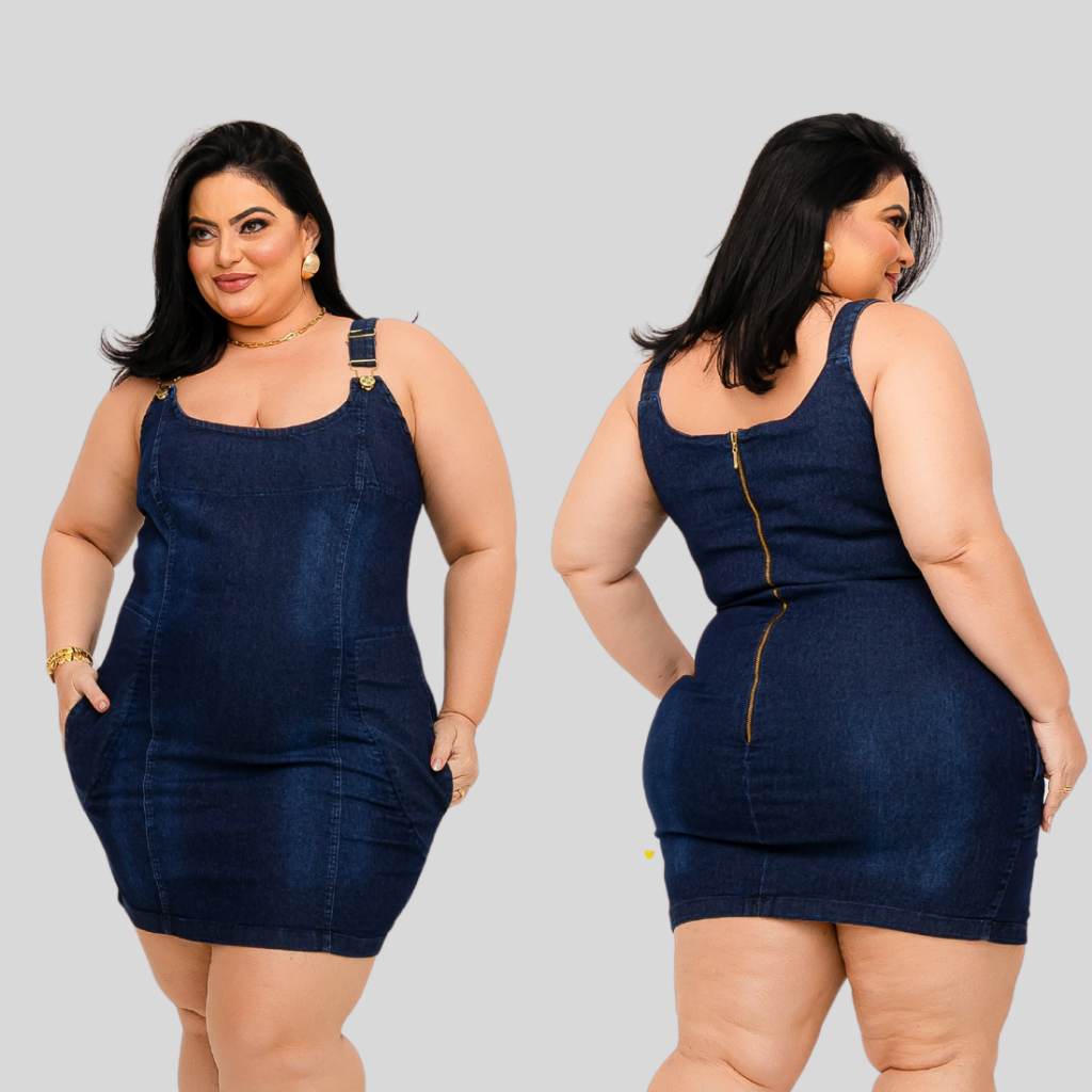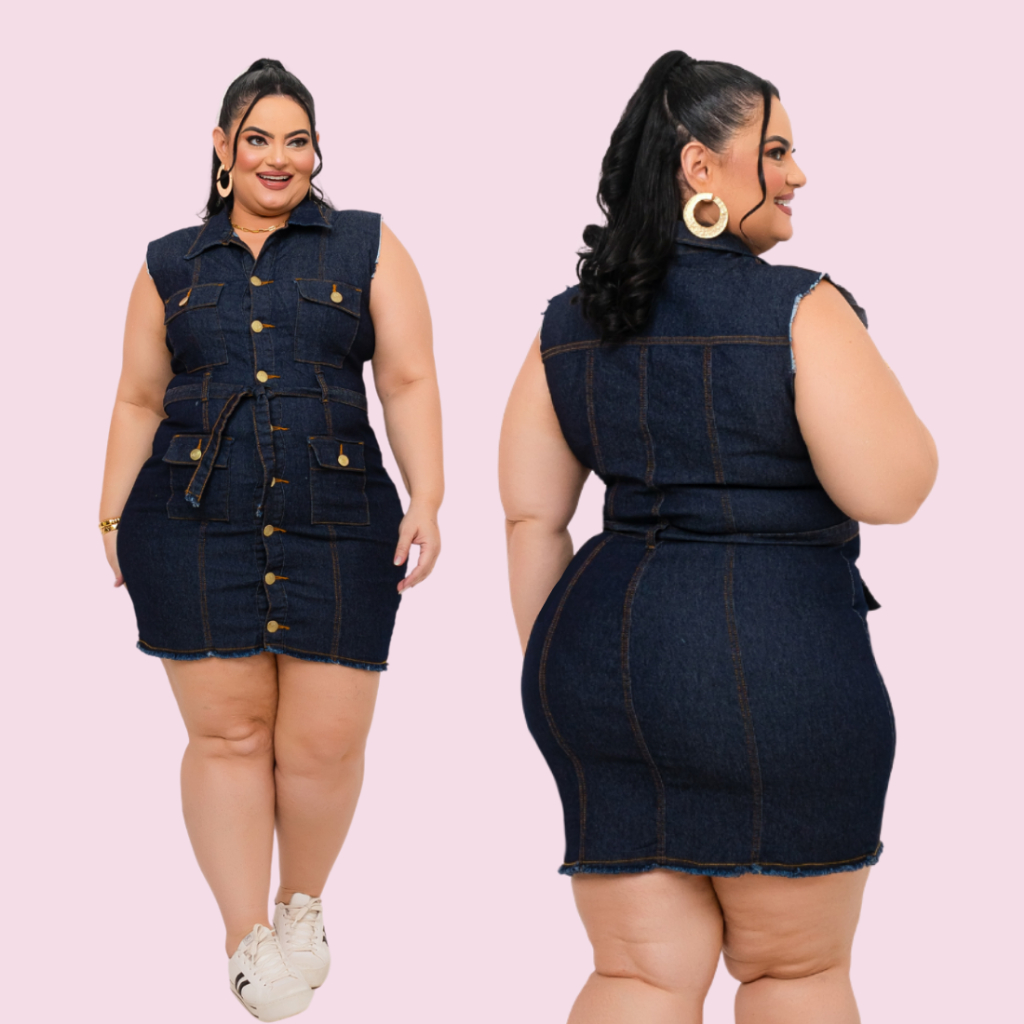 Vestido Jeans Plus SIze Feminino com Elastano Estica