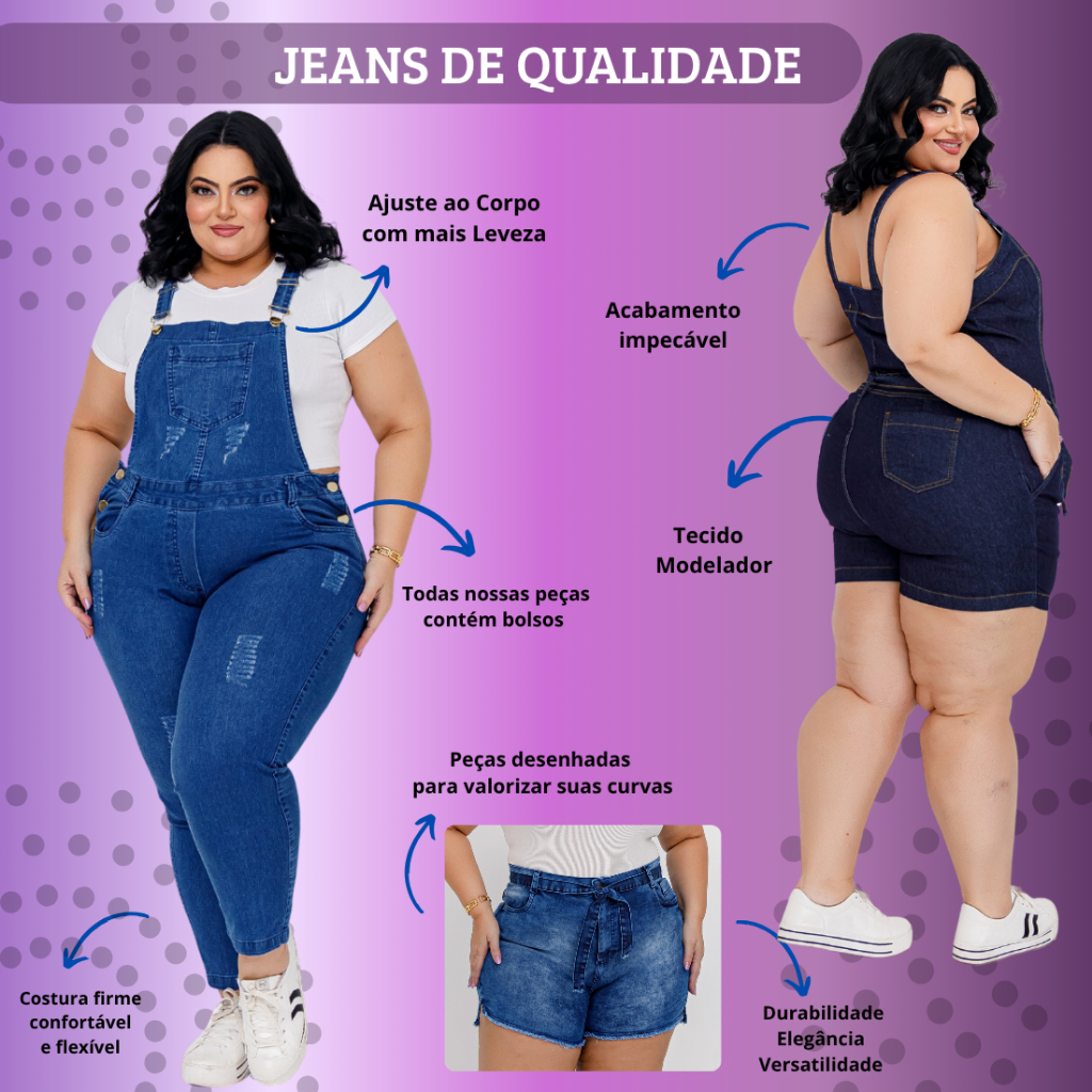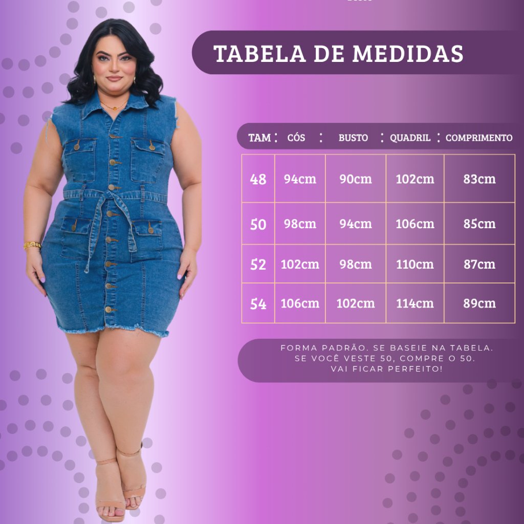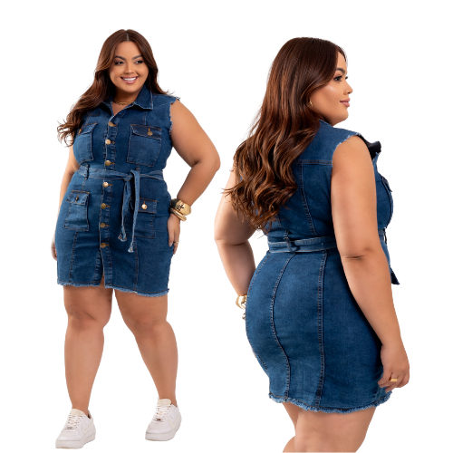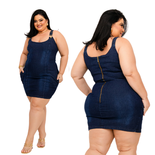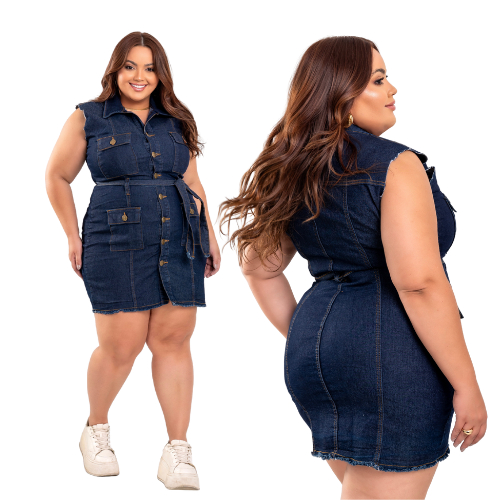 Vestido Jeans Plus SIze Feminino com Elastano Estica
