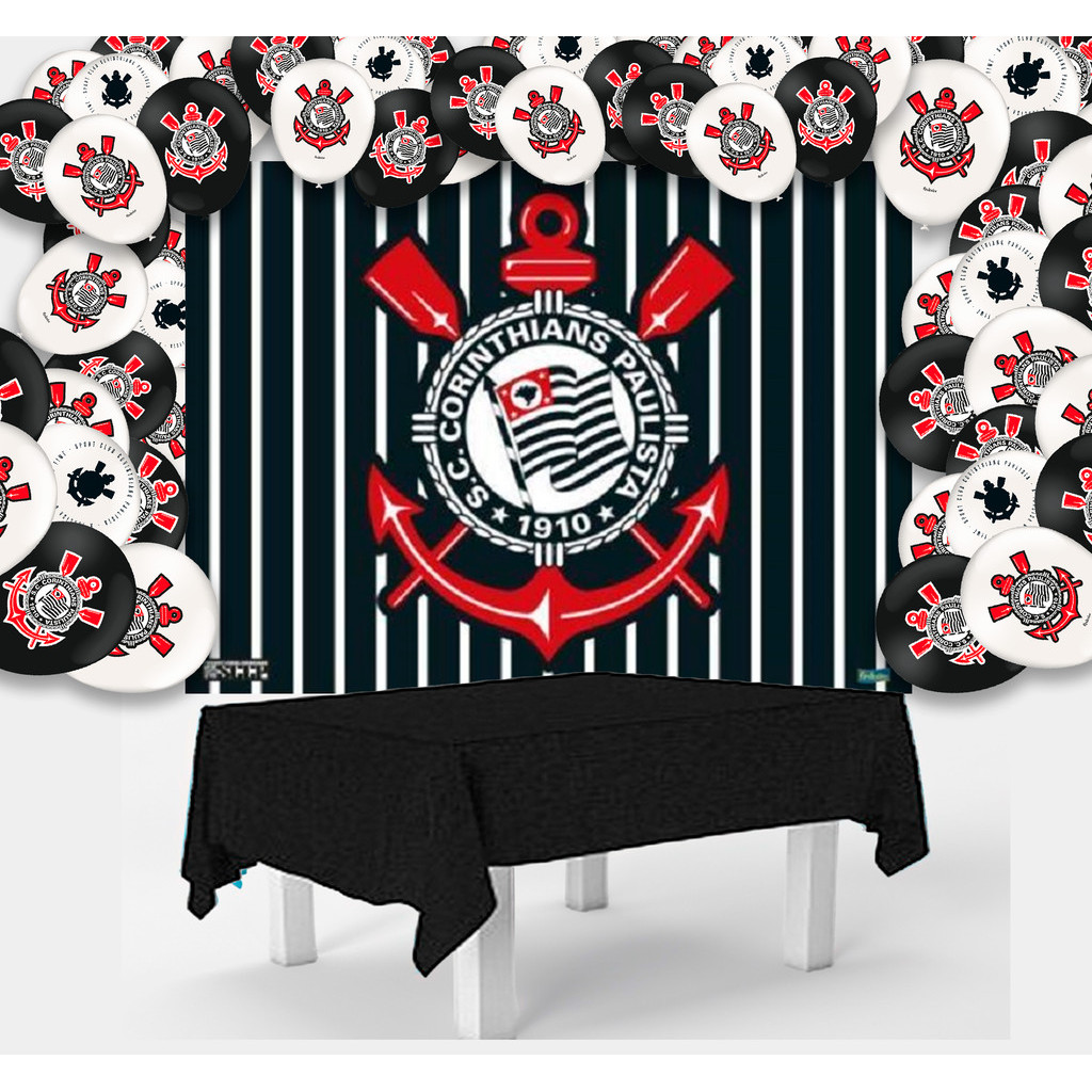 Kit festa Corinthians Anive Toalha Preta + 25 balões + Painel TNT