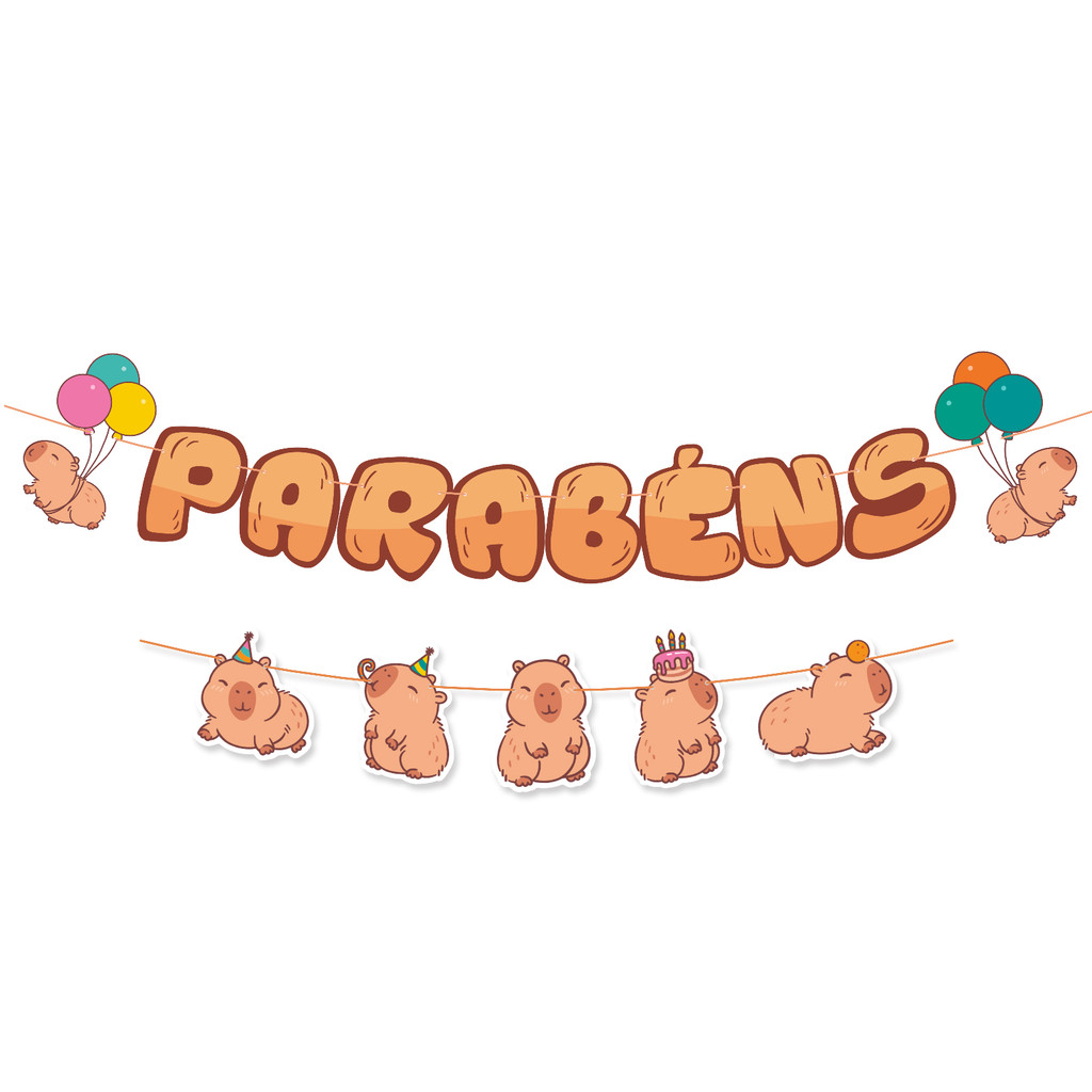 Faixa Aniversário festa Capivara Decoração Aniversário 1,5m cor viva