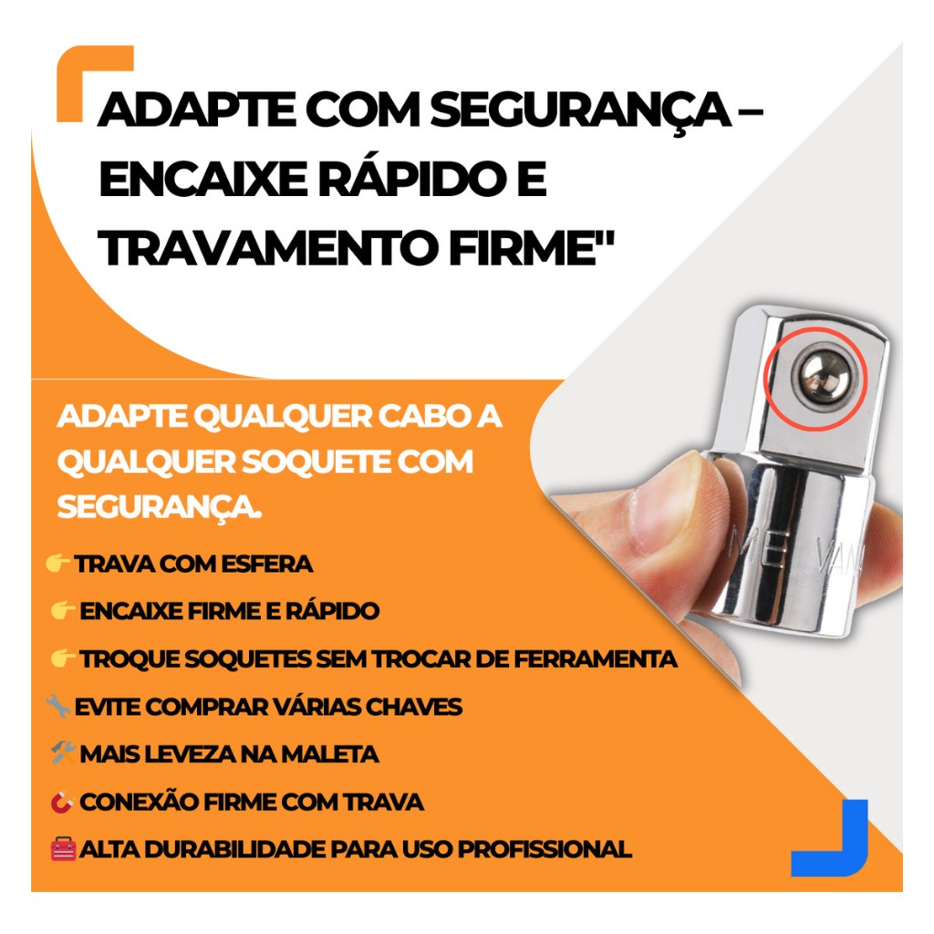 Adaptador Catraca Soquete 1/4 3/8 1/2 Kit 6 Peças Cr-v