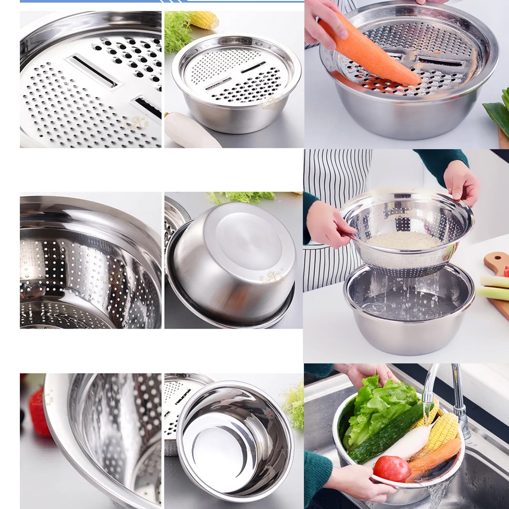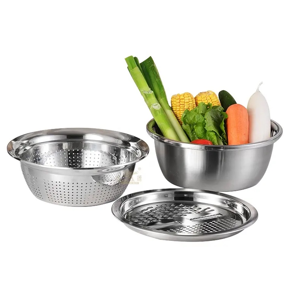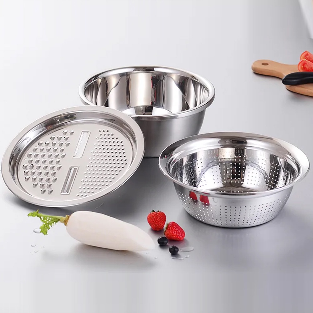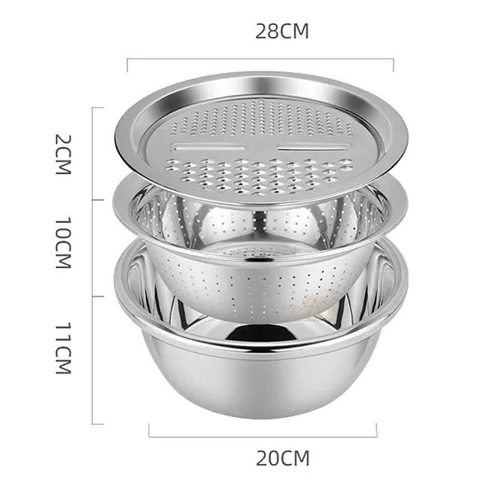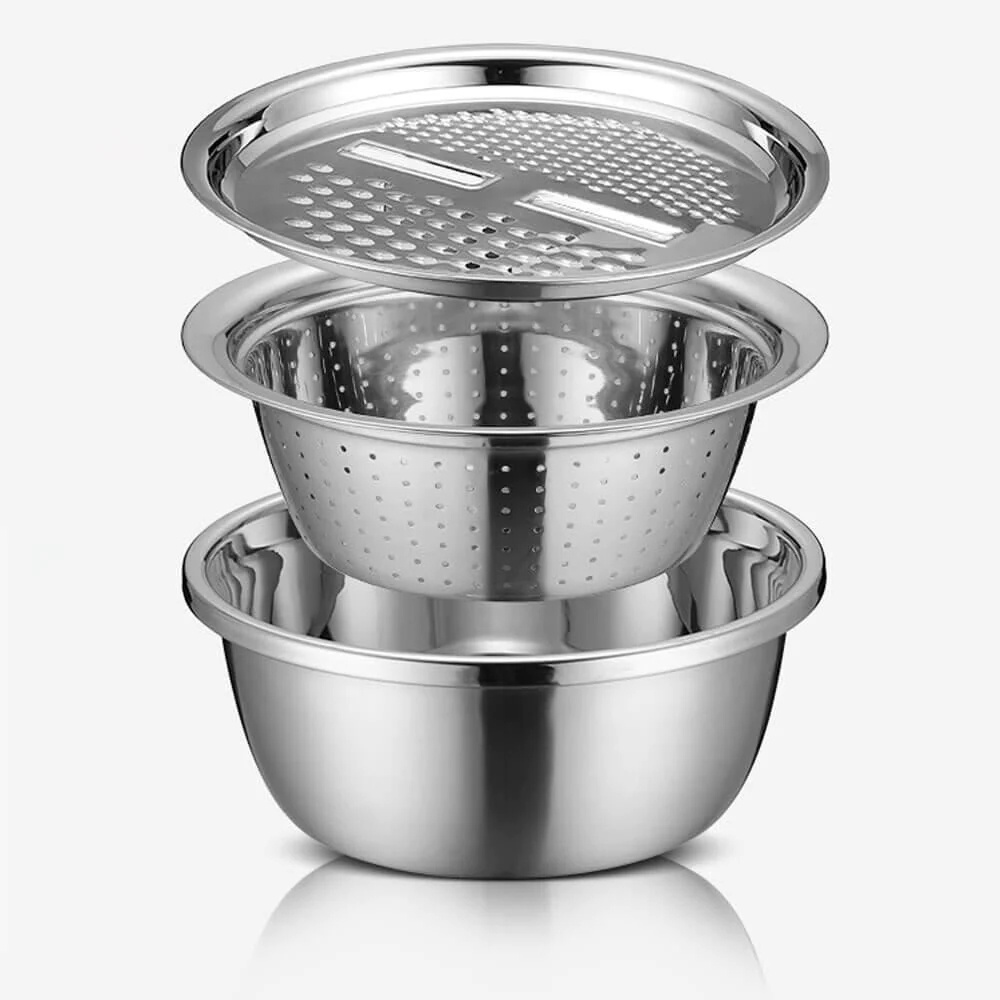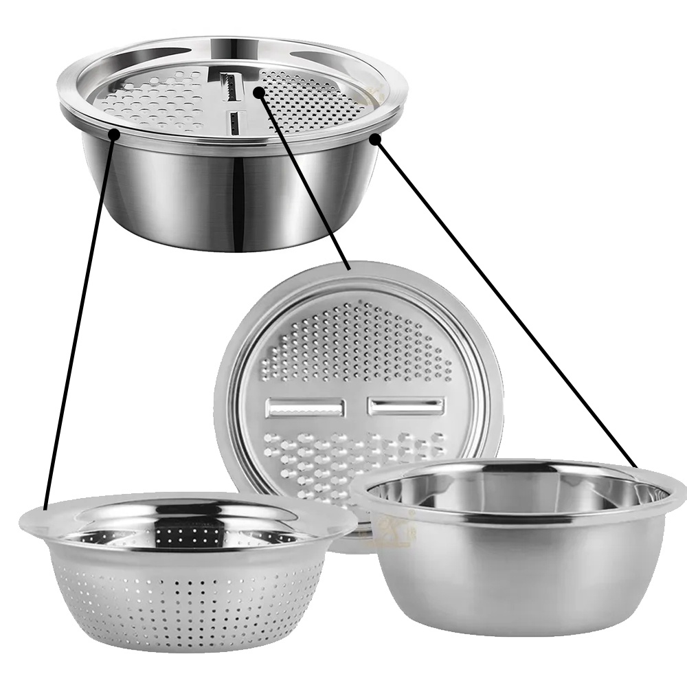 Conjunto Bowl Inox Multifuncional 3 em 1 Ralador Escorredor