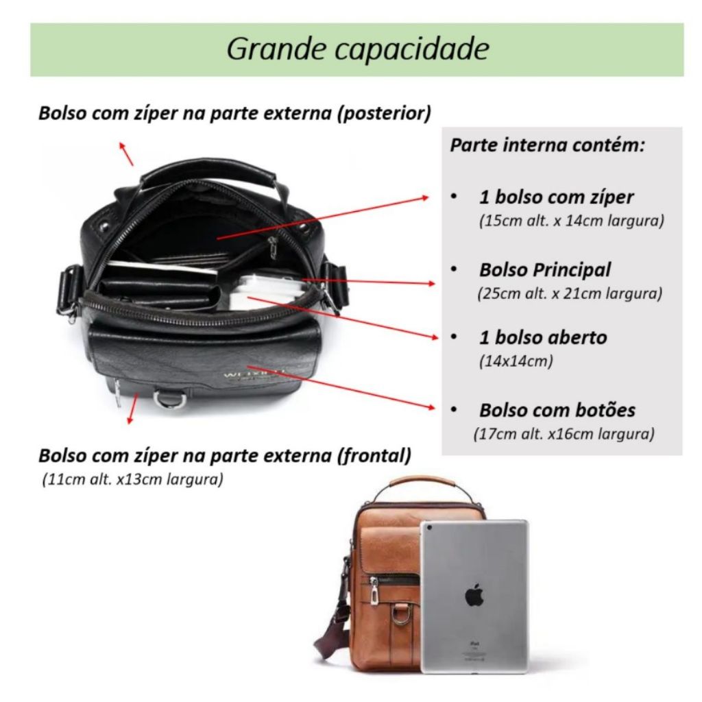 Bolsa Tiracolo Masculina De Couro Mão E Ombro Casual