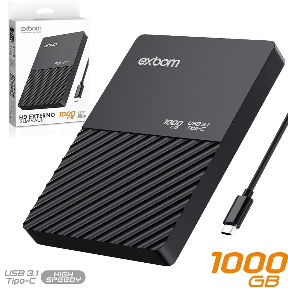 HD Externo 1TB de 2.5 Polegadas Type C 3.1 Exbom HDE-S1TA