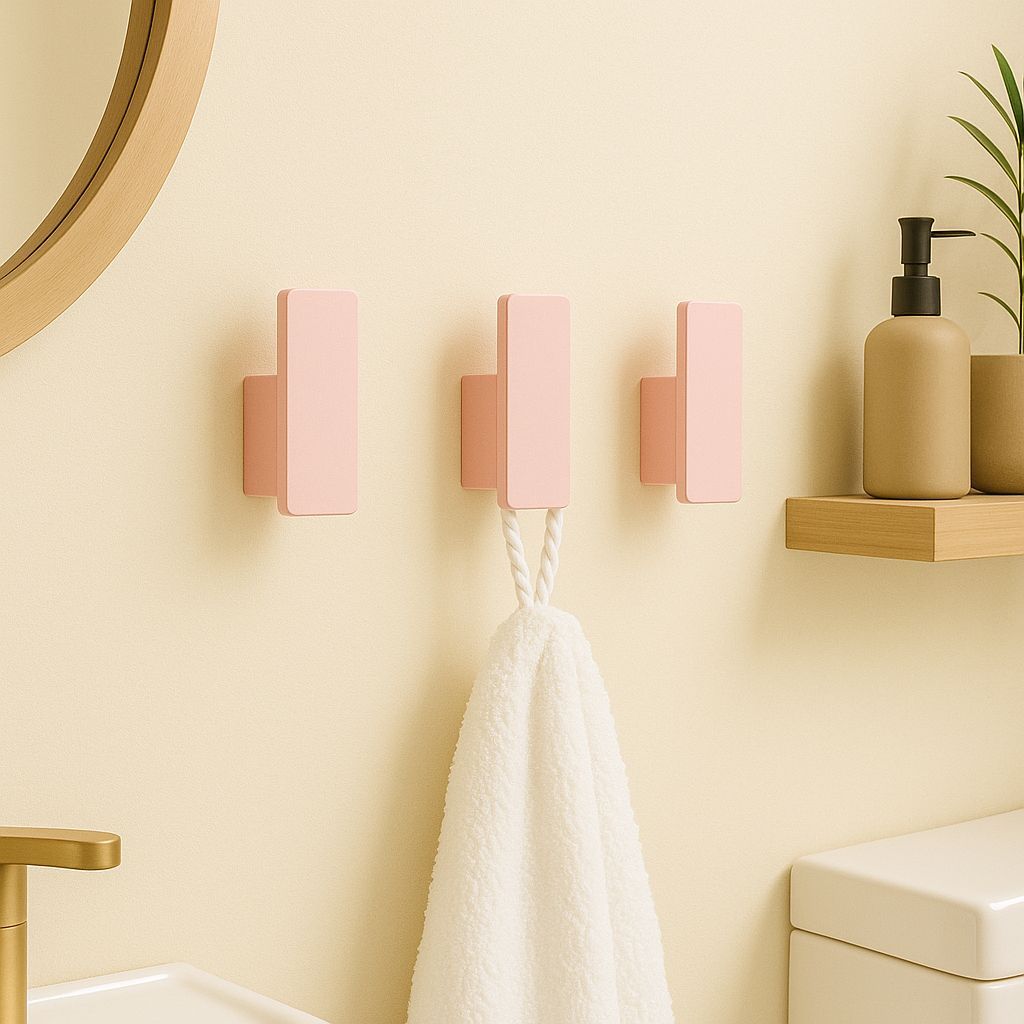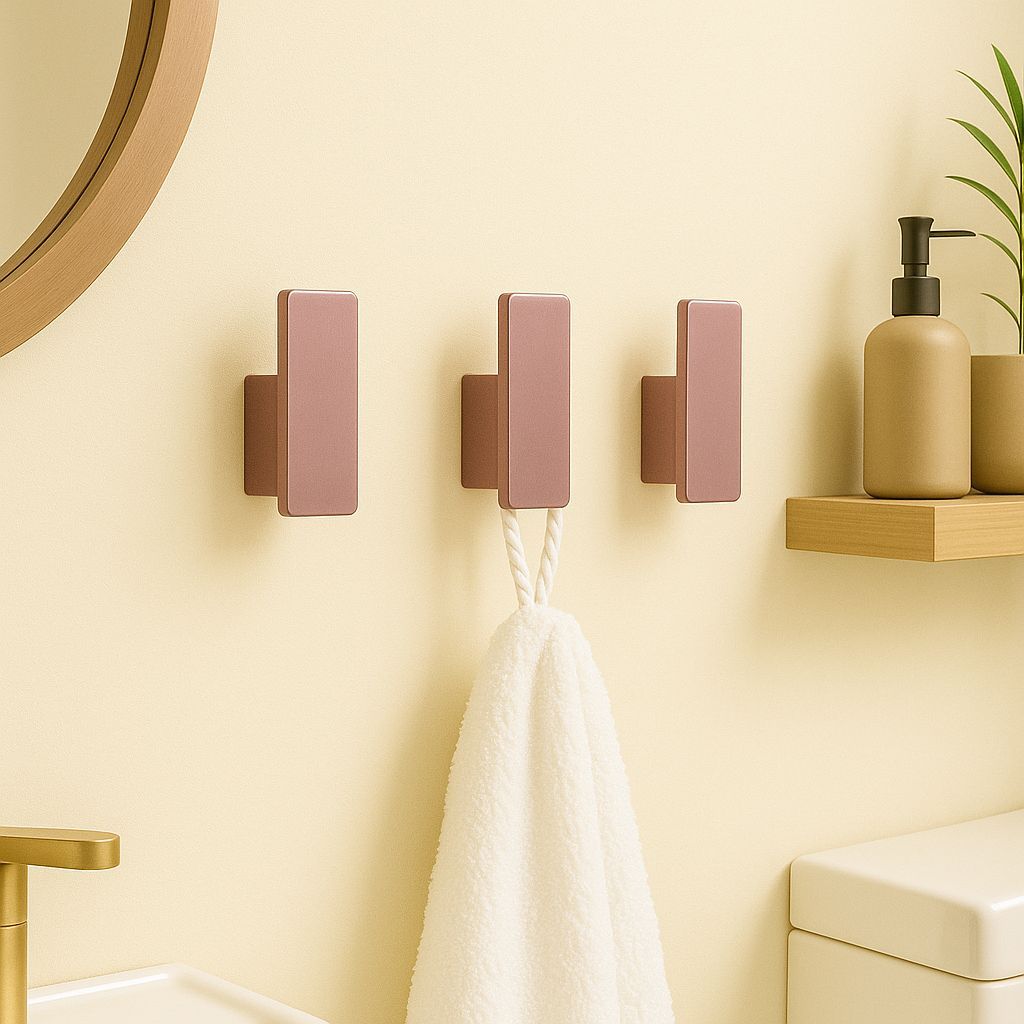 Kit Ganchos De Parede Para Toalhas Bolsas e Roupas Com Fita Adesiva Rosa