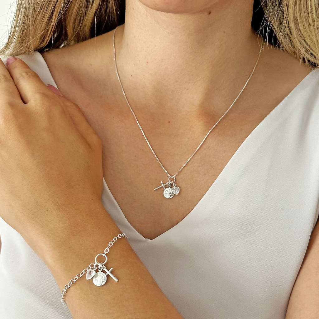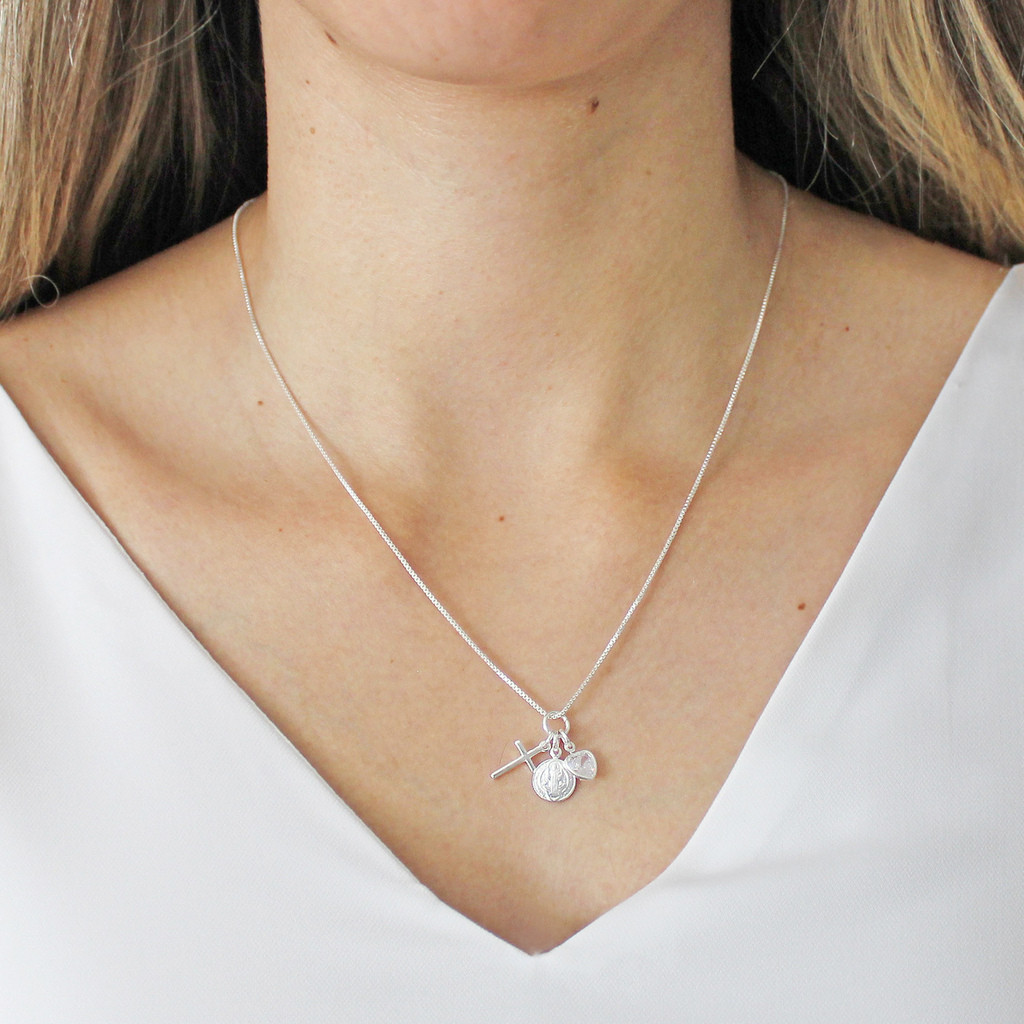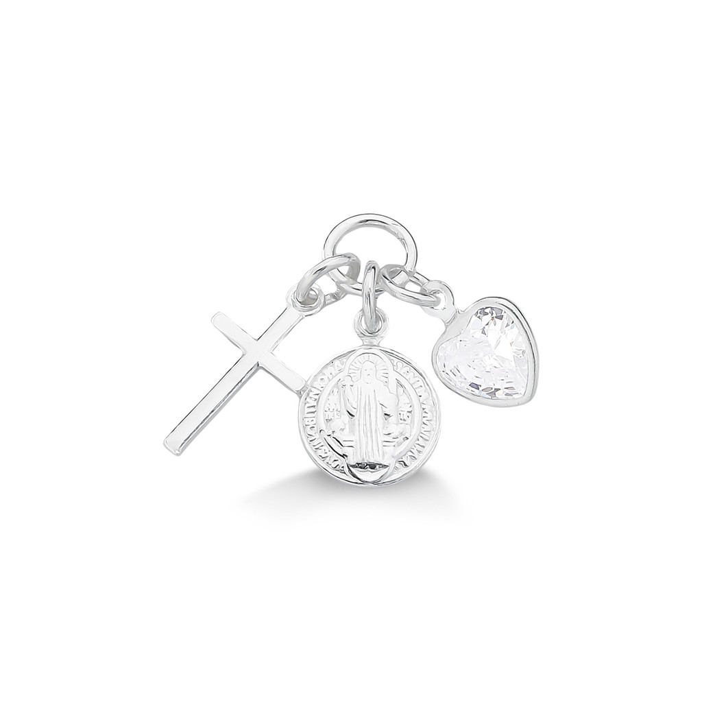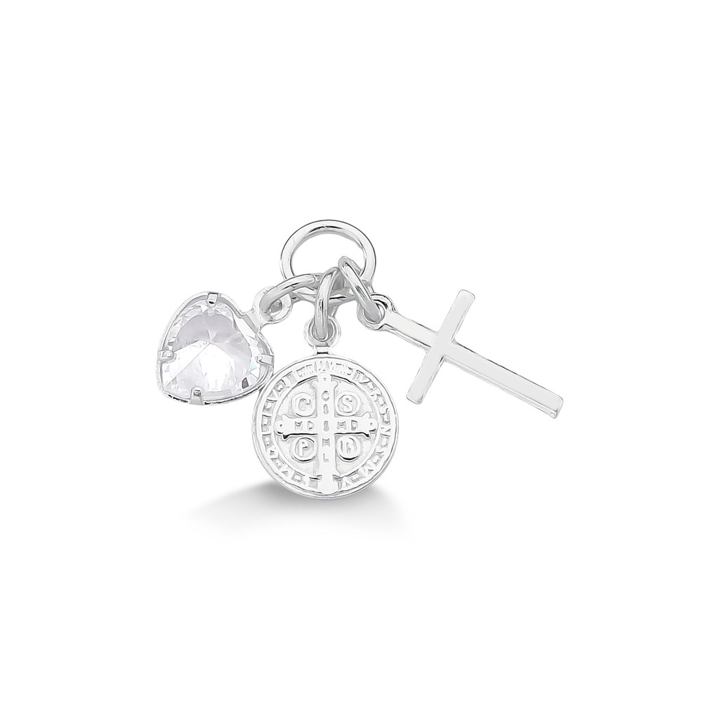 Pingente Patuá Medalha São Bento, Cruz e Coração Prata 925