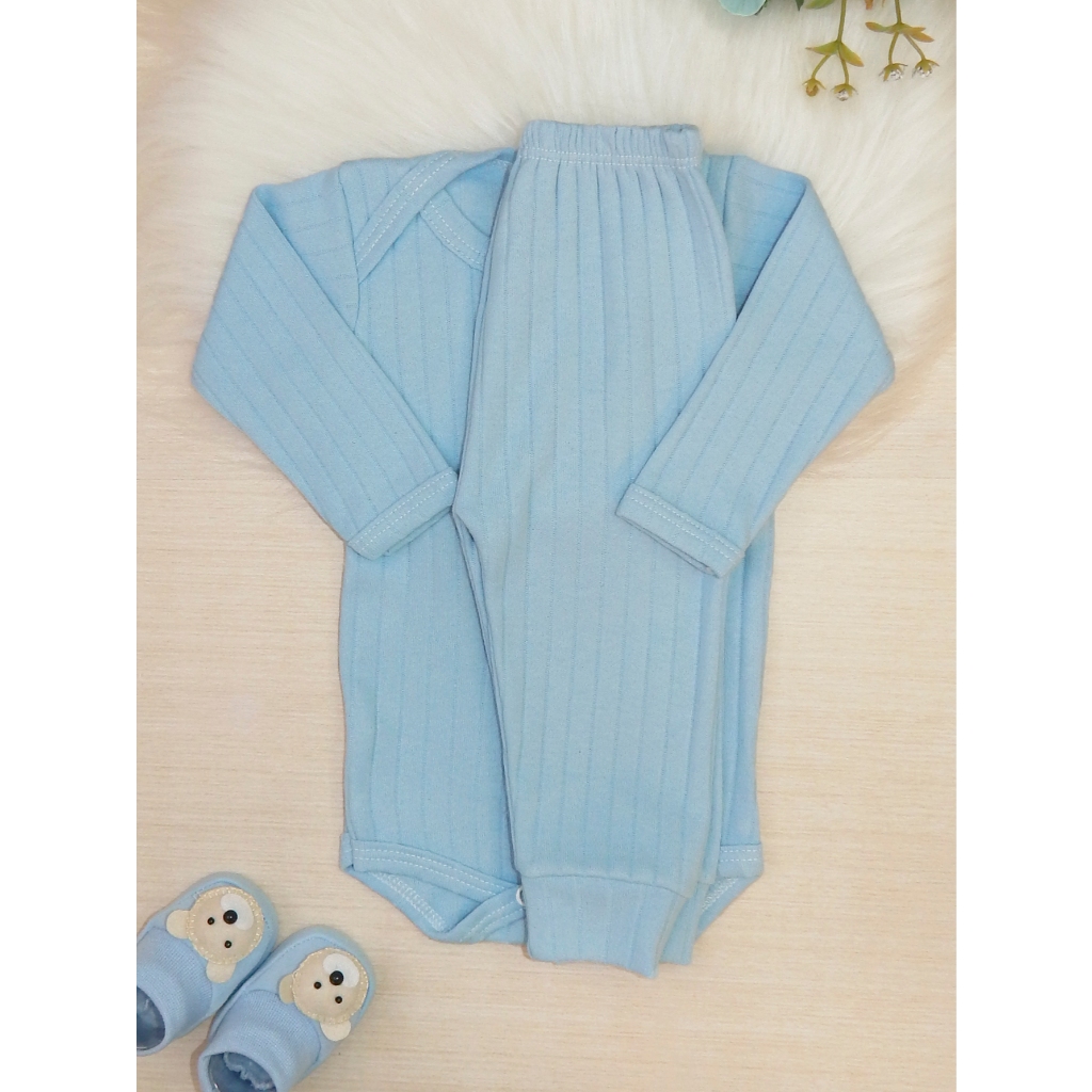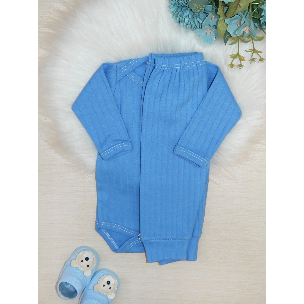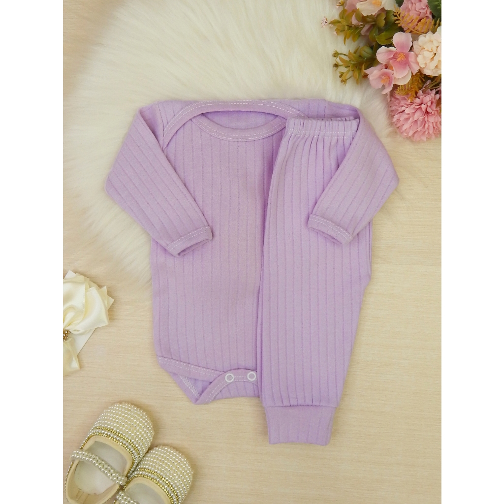 Conjunto Bebê Recém Nascido Algodão Canelado Liso 2 Peças